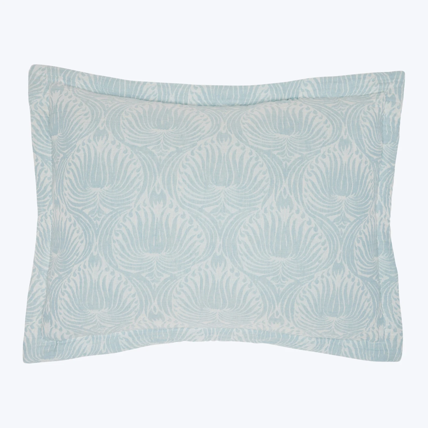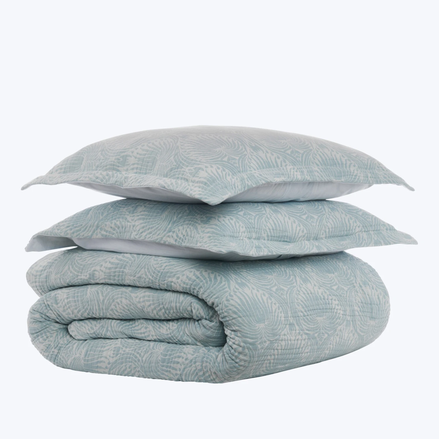 The Adesh Mist Duvet Set is made from 100% cotton. Finished with a misty blue hue and a woven flower motif, it blends texture and design to create unique visual appeal. Featuring a distinct balance of bold and bright from old-world traditions and new-world style, John Robshaw displays an updated spin on traditional, handmade textiles with a vibrant mix of sophistication and romantic allure. Dying, printing, and experimenting alongside the artisans to create these unique fabrics, John Robshaw helps preserve traditional block printing, hand-stitching, hand-painting, and hand-quilting textiles in India.