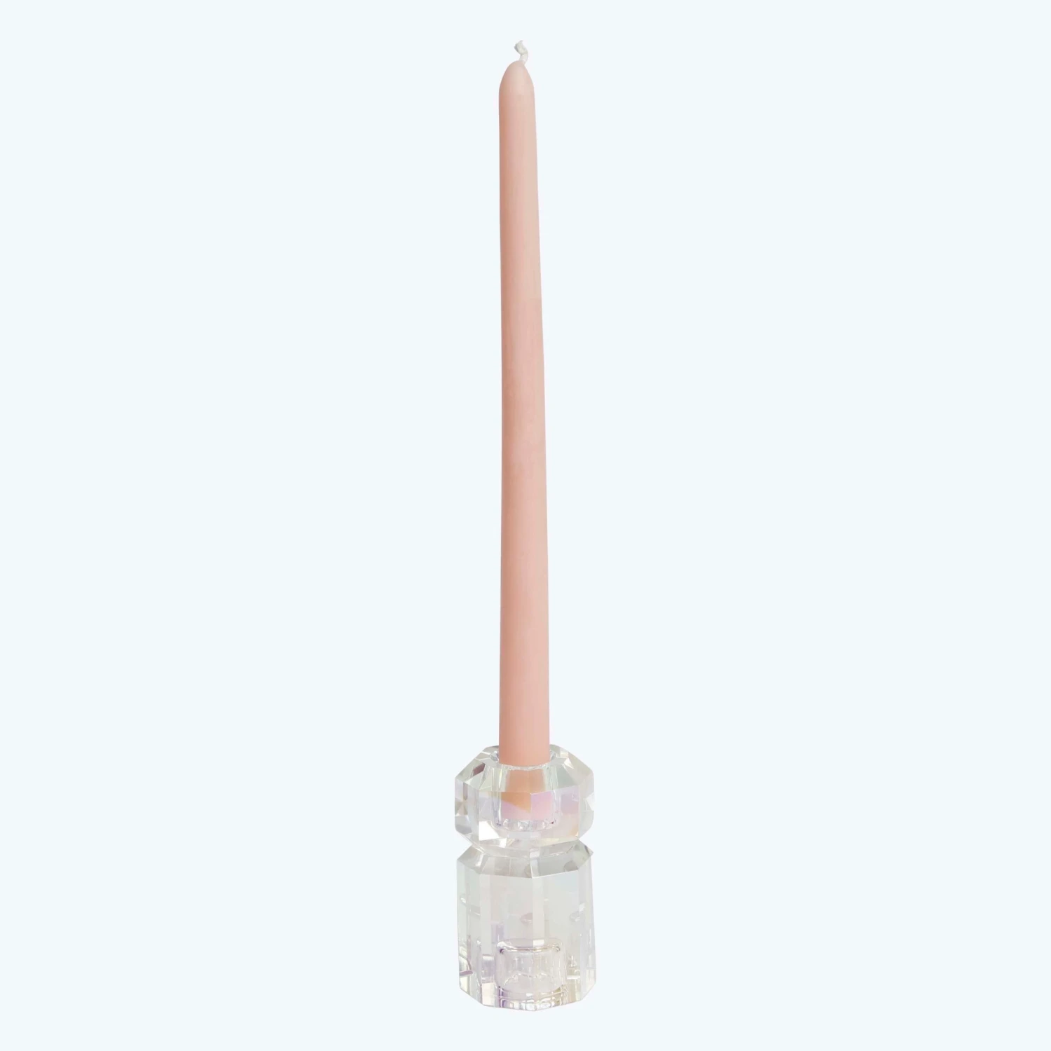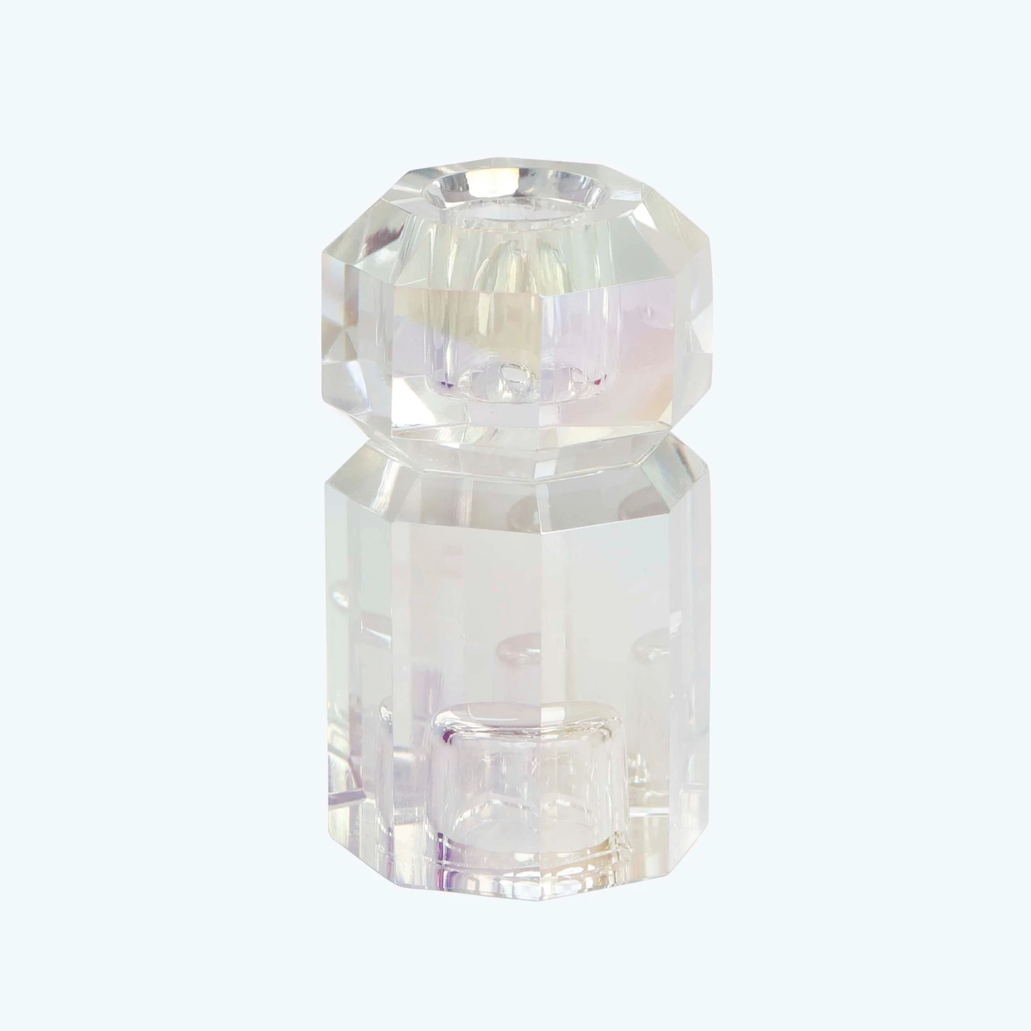 Be transported to a mystical land of iridescent magic with this Aura Crystal Totem Tall Candle Holder. This colorful crystal glass candle holder is an enchanting addition to your table settings, bookshelf, coffee table, or anywhere else in need of a little extra color.