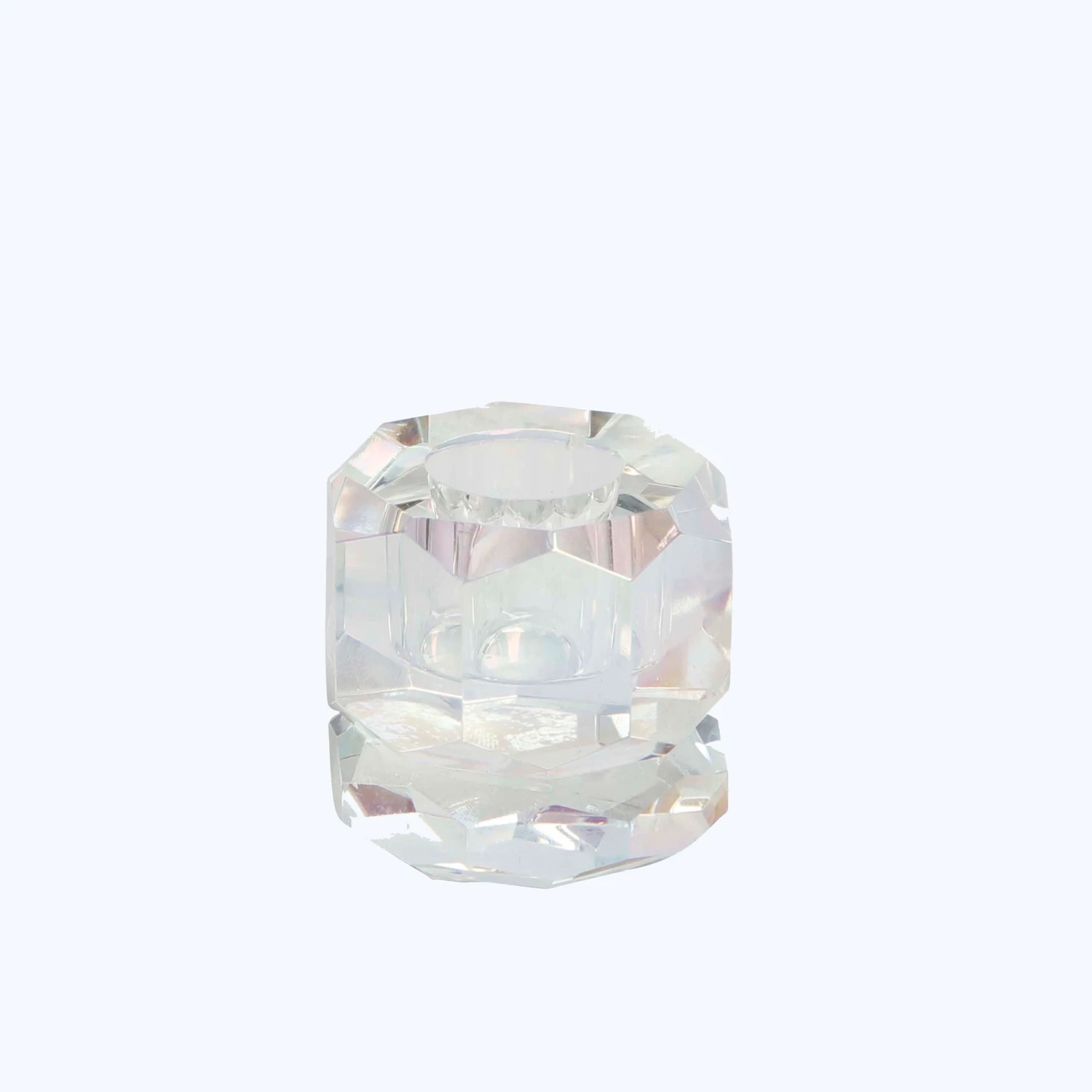Be transported to a mystical land of iridescent magic with this Aura Crystal Totem Candle Holder. This colorful crystal glass candle holder is an enchanting addition to your table settings, bookshelf, coffee table, or anywhere else in need of a little extra color.