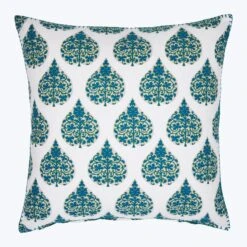 The Bilva Peacock Sham is defined by an elegant fig-leaf print in a peacock green. Made from organic long staple cotton percale, it’s an exceptionally soft and smooth addition to any bedroom sanctuary. *Sham sold individually Featuring a distinct balance of bold and bright from old-world traditions and new-world style, John Robshaw displays an updated spin on traditional, handmade textiles with a vibrant mix of sophistication and romantic allure. Dying, printing, and experimenting alongside the artisans to create these unique fabrics, John Robshaw helps preserve traditional block printing, hand-stitching, hand-painting, and hand-quilting textiles in India.