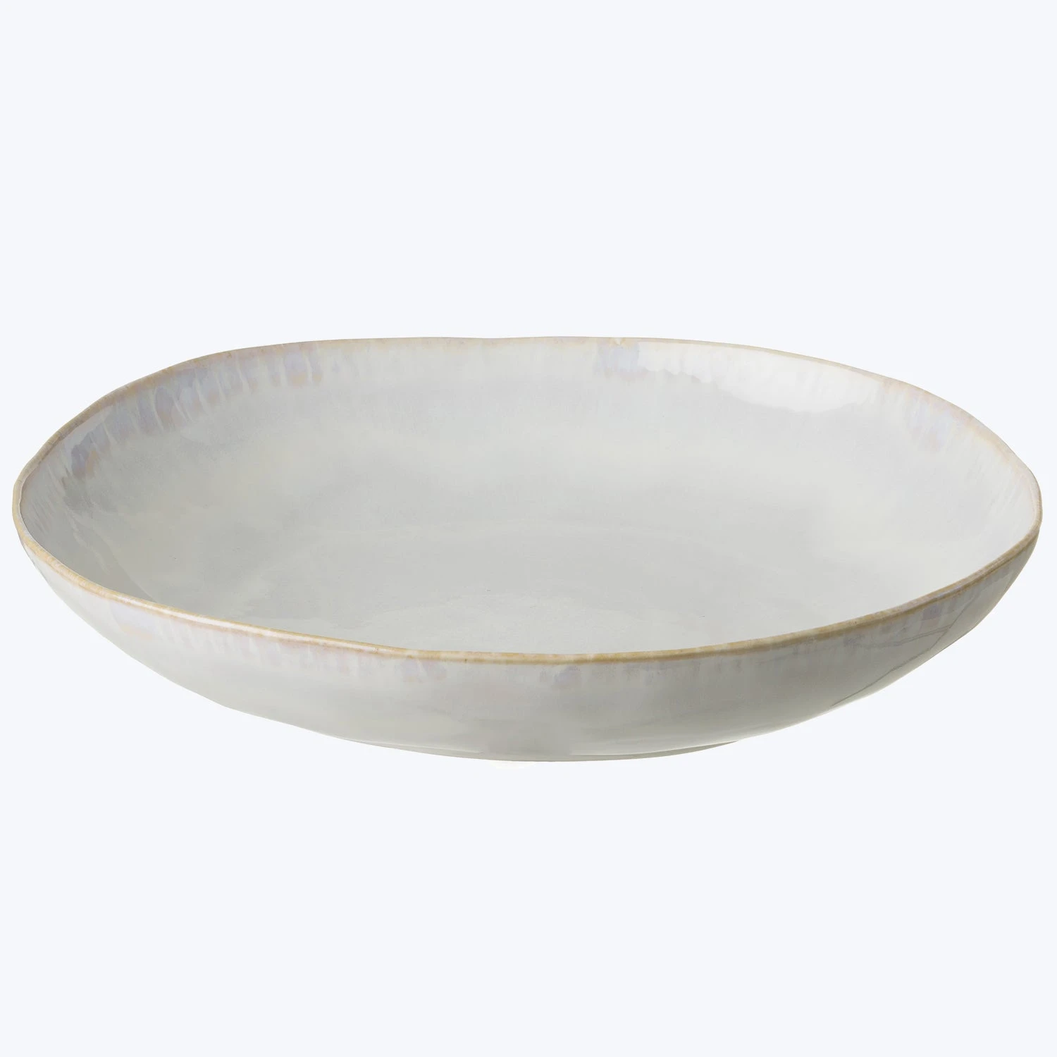 Made in Portugal, this Brisa Pasta Serving Bowl features a distinctive coastal style that adds light to your meal. The Brisa Collection transports us to the landscape of lagoons and sandy beaches stretching across deserted islands with its milky blend of white and blue glazes.