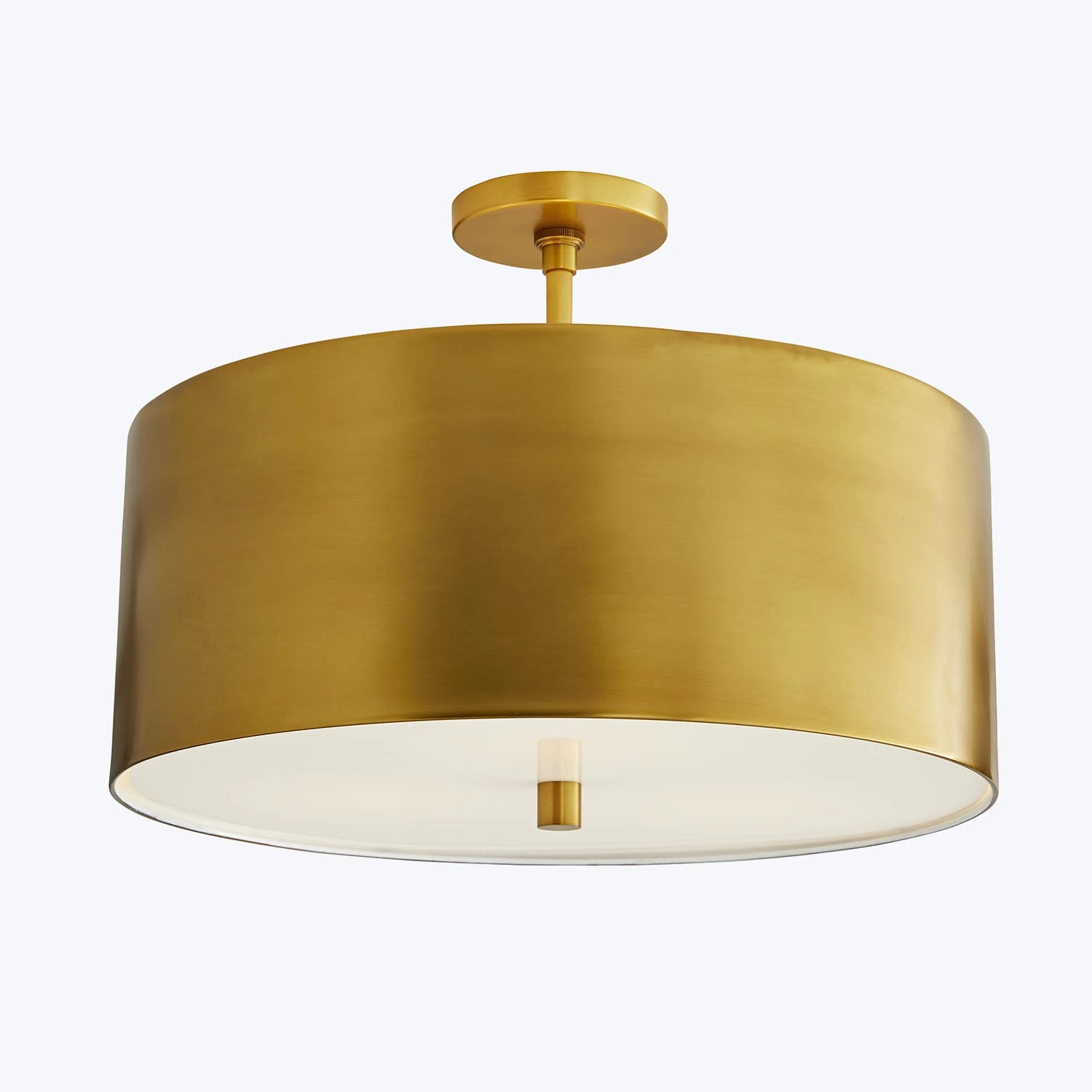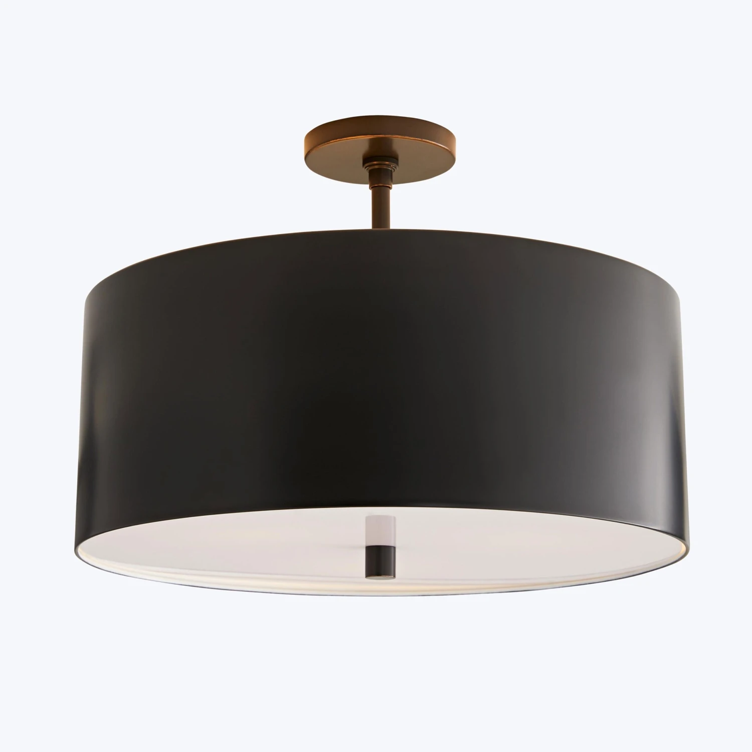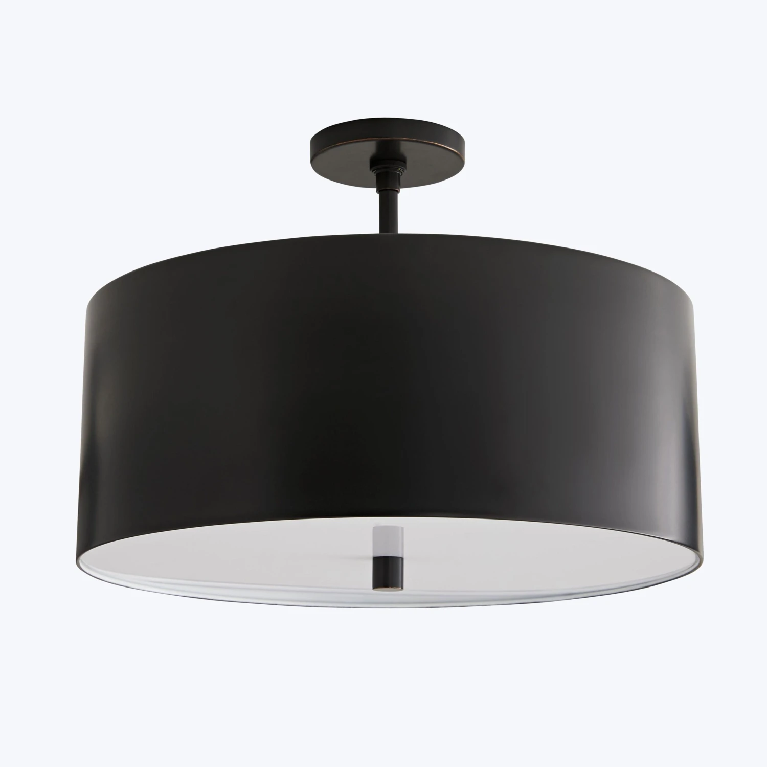 A sleek steel shade frames this modern ceiling lamp, which features an acrylic diffuser that is suspended from within. The balance and contrast of materials creates a design with timeless appeal.