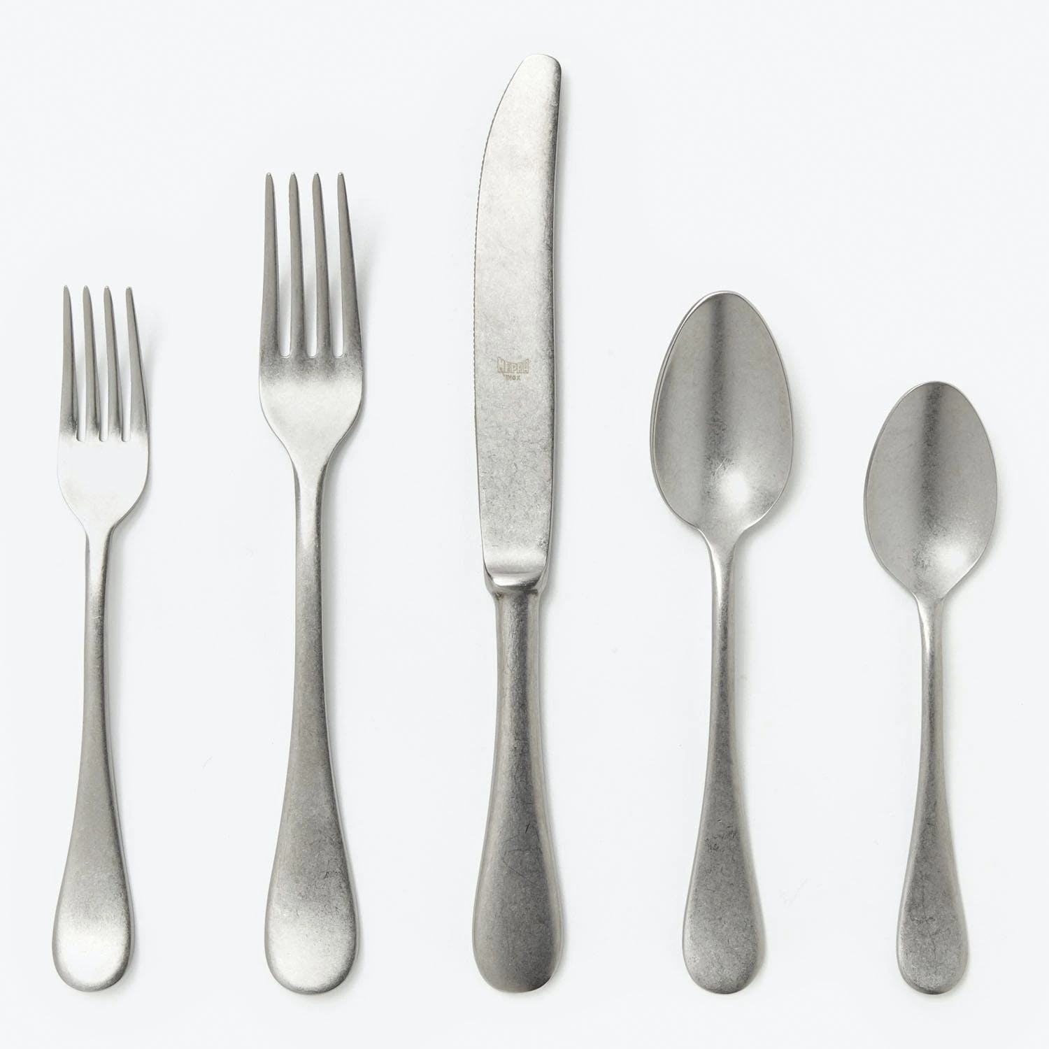 This Vintage Flatware Set is made of the highest quality 18/10 stainless steel, 3 mm thick, very durable, and incredibly ergonomic for dinner parties and everyday use. Knives have double serration for durable sharpness. The perfect balance between style ad function, this high-quality Italian flatware brings elegance to the table without sacrificing functionality. Dishwasher and food safe.
