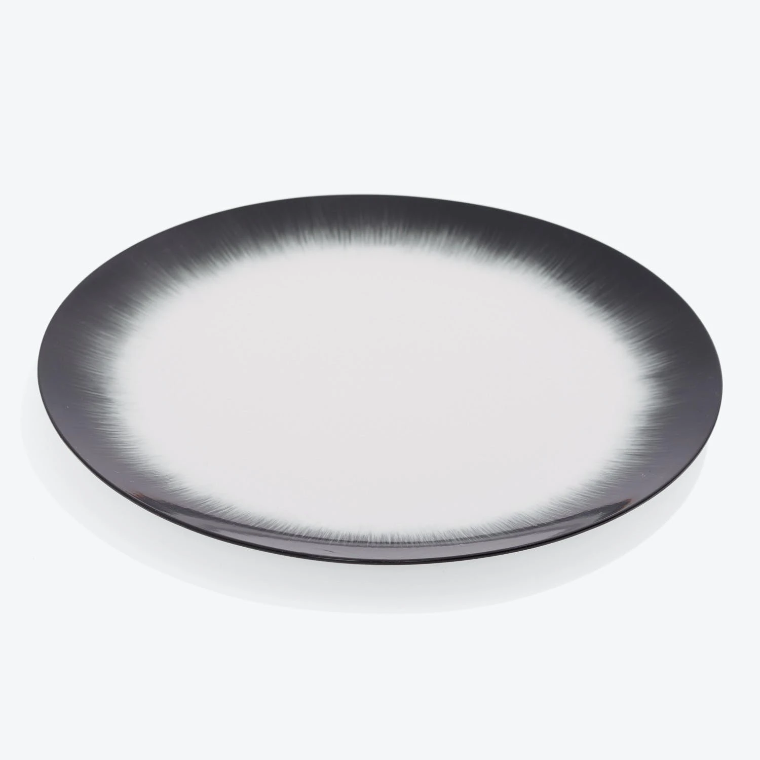 The De dinnerware collection, a take on chiaroscuro, plays with light and shadow through the painted black and white hues on each porcelain piece. The edges of piece feature a “degrade” painted by hand in several layers to create a meticulous interplay of lines. Each piece is truly unique, giving your table an elegant yet eclectic look. This collection was designed in Belgium by Ann Demeulemeester in collaboration with Serax.