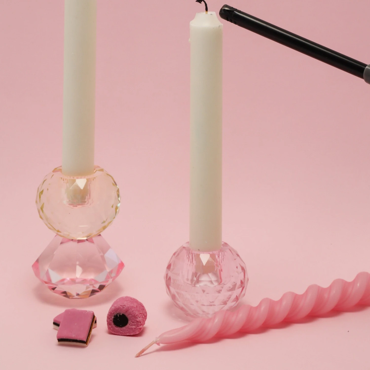 Transport your favorite sacred spaces to a mystical land of colorful magic with this Disco Crystal Candle Holder. This unique colorful crystal glass candle holder is an enchanting addition to your table settings, bookshelf, coffee table, or anywhere else in need of a little extra color.