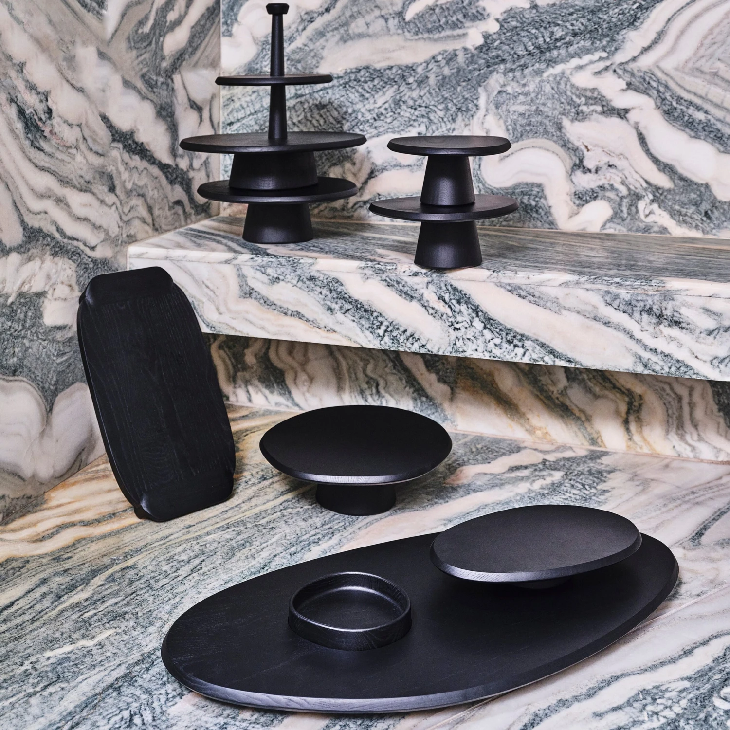 Discover the elegance of ash wood with this Black Dune Low Cake Stand, which emphasizes this beautiful wood’s unique characteristics and natural feel. This organically shaped cake stand or serving tray is a playful and functional addition to your table. The Dune Collection by leading American designer Kelly Wearstler uses balanced details to create striking volumes and harmonious compositions.