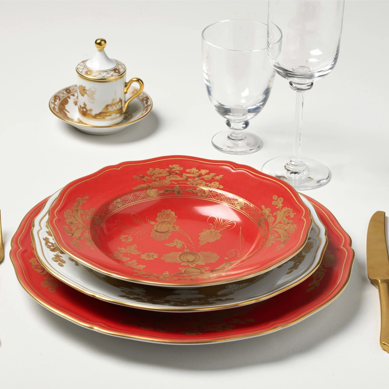 The table setting is completed by plates, soups, dessert dishes, and bread dishes of the same line that can also be mixed and matched with other colorways from the Oriente Italiano collection for infinite combinations, where every composition is unique and beautiful.