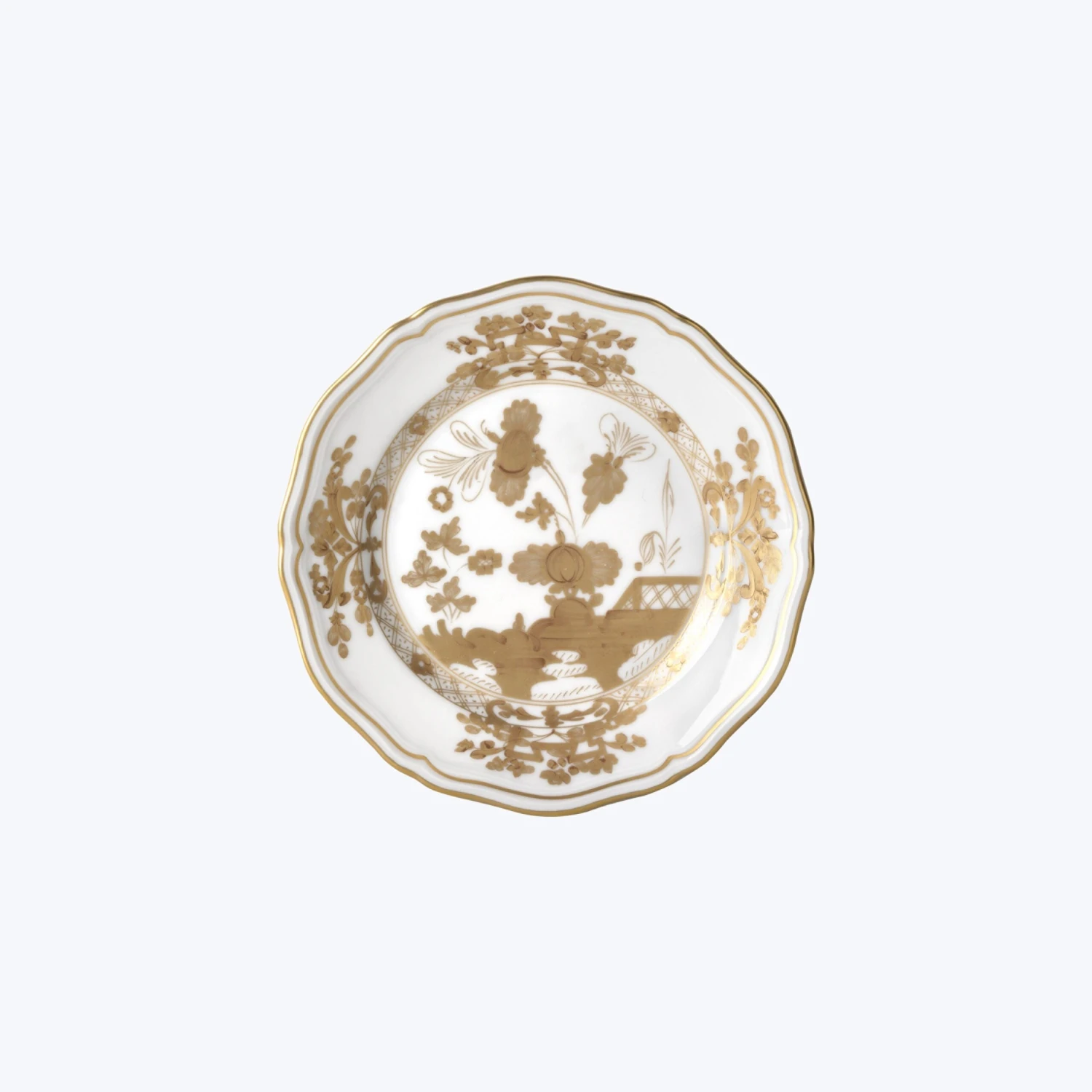 This Oriente Gold Bread Plate is characterized by fine porcelain embellished with a delicate floral ornament in hand-painted pure gold that traces the lines of the classic Antico Doccia, distinctive of the Florentine Maison, that exudes Italian craftsmanship. Each piece of stunning porcelain is a work of art and a piece of history – the Ginori 1735 atelier of expert artisans was founded in the 18th century, merging timeless elegance with beautiful craftsmanship.