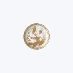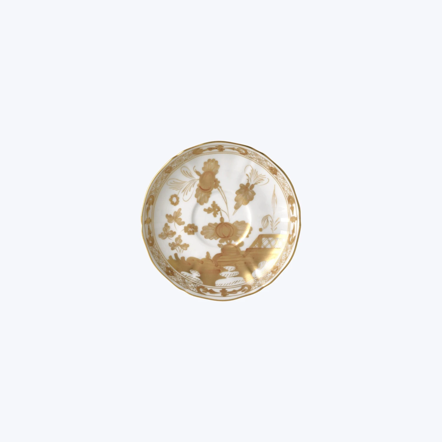This Oriente Gold Tea Saucer is characterized by fine porcelain embellished with a delicate floral ornament in hand-painted pure gold that traces the lines of the classic Antico Doccia, distinctive of the Florentine Maison, that exudes Italian craftsmanship. Each piece of stunning porcelain is a work of art and a piece of history – the Ginori 1735 atelier of expert artisans was founded in the 18th century, merging timeless elegance with beautiful craftsmanship.