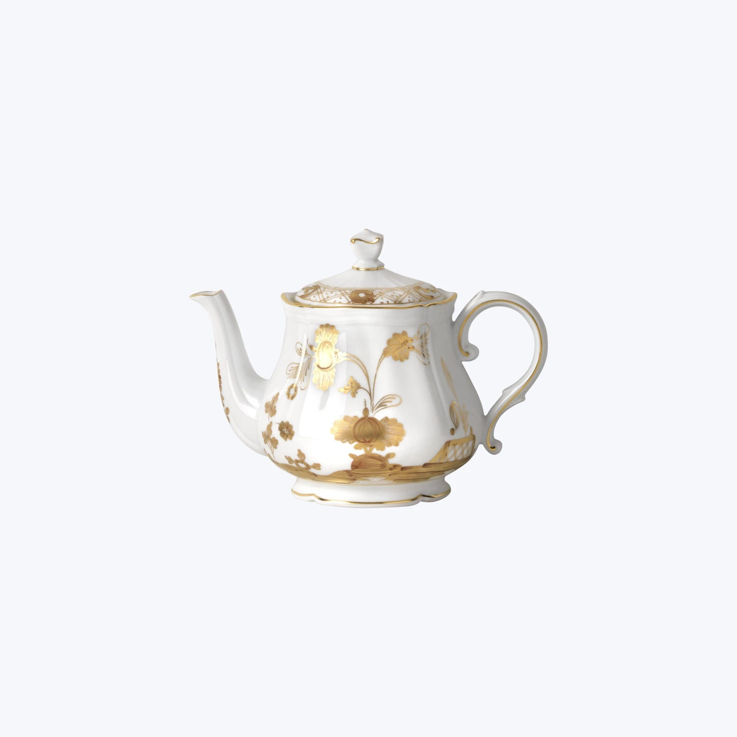 This Oriente Gold Teapot is characterized by fine porcelain embellished with a delicate floral ornament in hand-painted pure gold that traces the lines of the classic Antico Doccia, distinctive of the Florentine Maison, that exudes Italian craftsmanship. Each piece of stunning porcelain is a work of art and a piece of history – the Ginori 1735 atelier of expert artisans was founded in the 18th century, merging timeless elegance with beautiful craftsmanship.p.