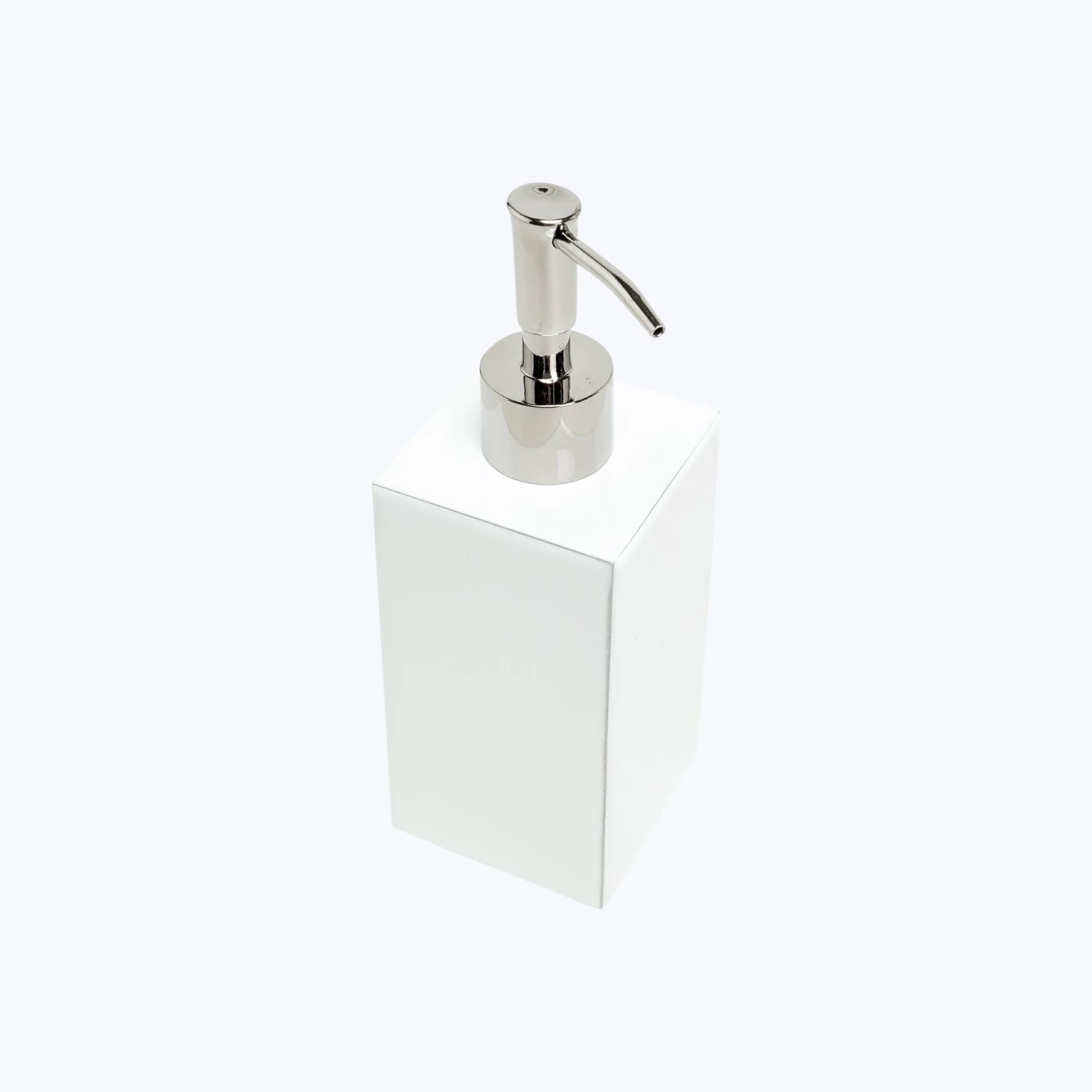 This assortment of minimalist contemporary bath accessories features a clean and modern hand-cut profile with a sparkling silver interior. Suitable for humid environments and are anti-bacterial and stain resistant. Hand cut, assembled, and polished.