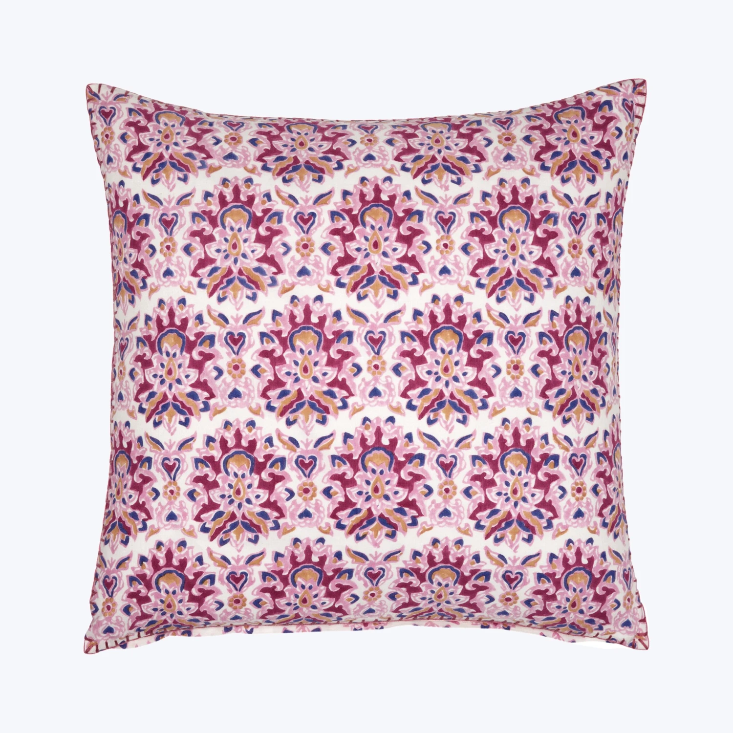 The Hayati Decorative Pillow features an intricate, printed design in a warm color palette. Evocative of flowers in bloom, it adds a touch of color and comfort to any room. Featuring a distinct balance of bold and bright from old-world traditions and new-world style, John Robshaw displays an updated spin on traditional, handmade textiles with a vibrant mix of sophistication and romantic allure. Dying, printing, and experimenting alongside the artisans to create these unique fabrics, John Robshaw helps preserve traditional block printing, hand-stitching, hand-painting, and hand-quilting textiles in India.