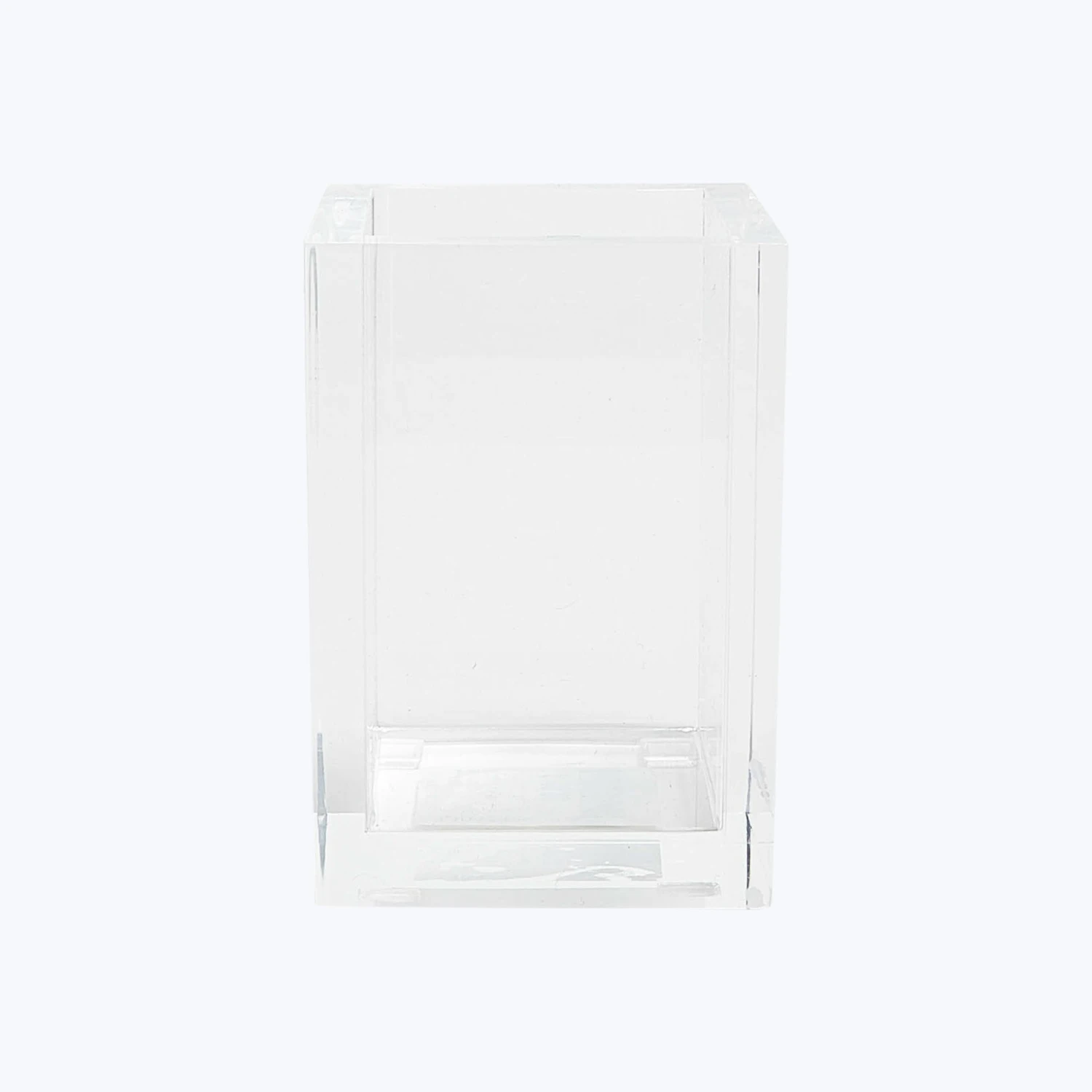 This assortment of contemporary bath accessories features a clean and modern clear profile. Suitable for humid environments and are anti-bacterial and stain resistant. Hand cut, assembled, and polished.