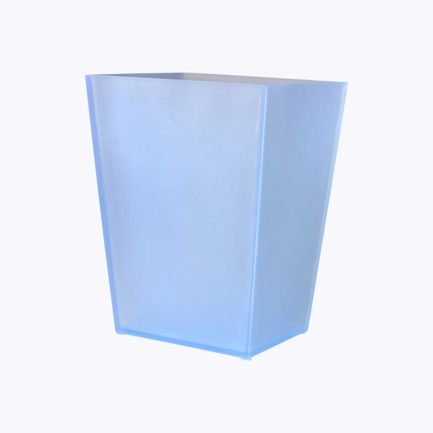 This assortment of neutral contemporary bath accessories features a clean and modern sandblasted blue frost-finished profile. Suitable for humid environments and are anti-bacterial and stain resistant. Hand cut, assembled, and polished.