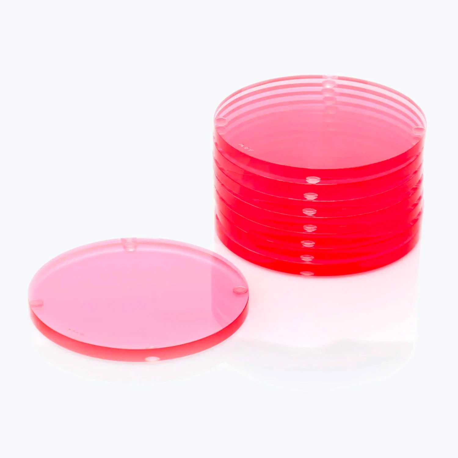 Available in a spectrum of bold hues and sophisticated neutrals, this unique collection reimagines classic coasters in modern acrylic. Striking and sleek, they rest beneath cocktails and other drinks with contemporary elegance.
