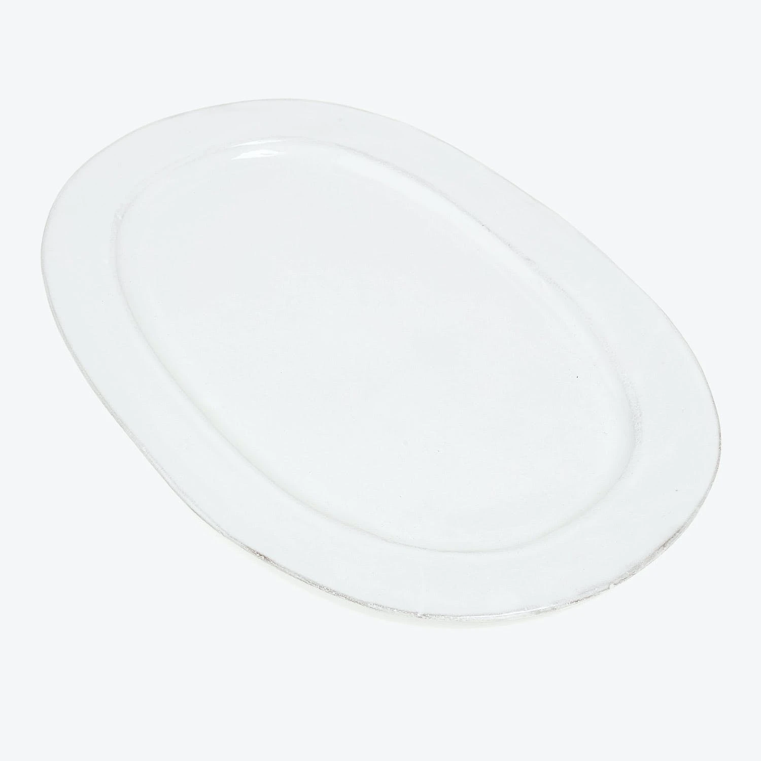 Rich in tradition and romantically bohemian, this hand-molded black terracotta platter highlights the unique. Inspired by 18th-century ceramics, each handmade piece is one-of-a-kind and crafted with generations old techniques. A milky white glaze is draped across the clay, ensuring that the delicate beauty unites with everyday practicality.