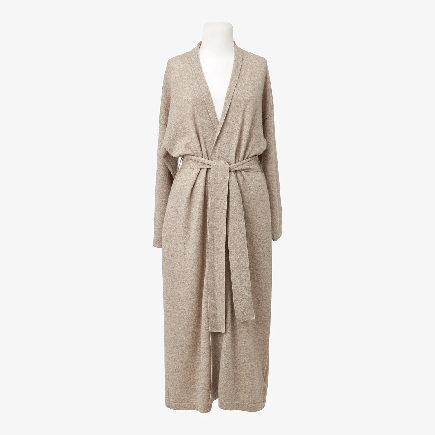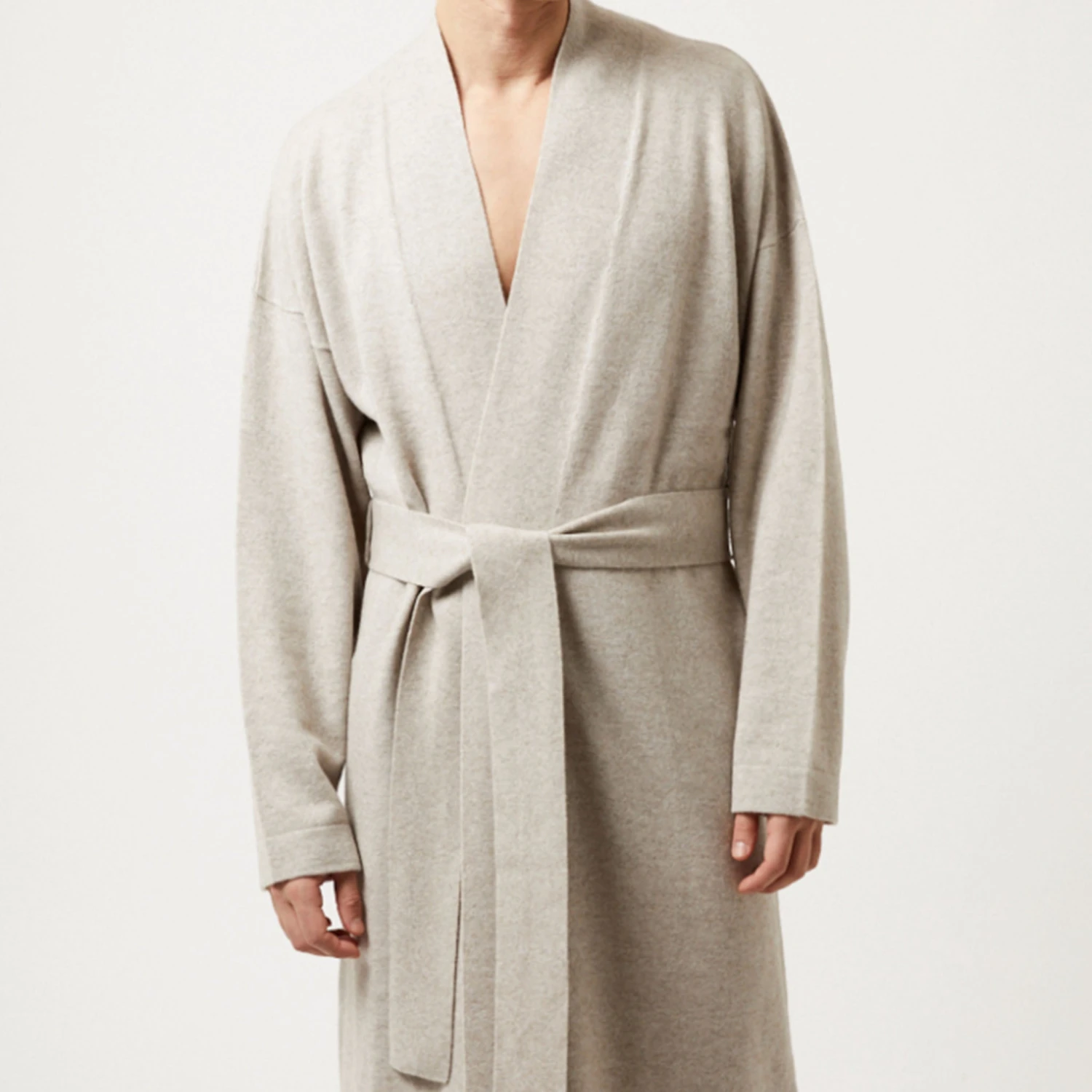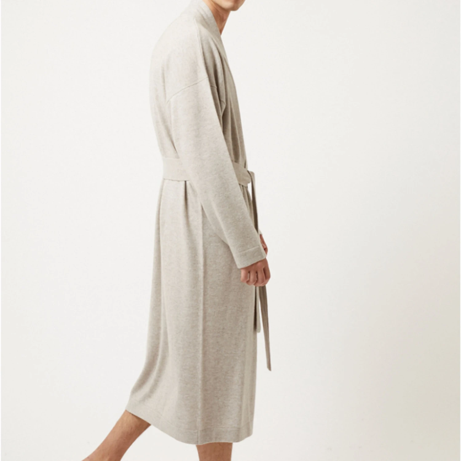 “}”>The Legere Dressing Gown is a knitted robe made of Oyuna’s signature pure cashmere. Featuring a belt closure and refined detailing, this cashmere robe is a clean and sophisticated take on a classic style with a luxuriously soft feel. Suitable for both men and women.