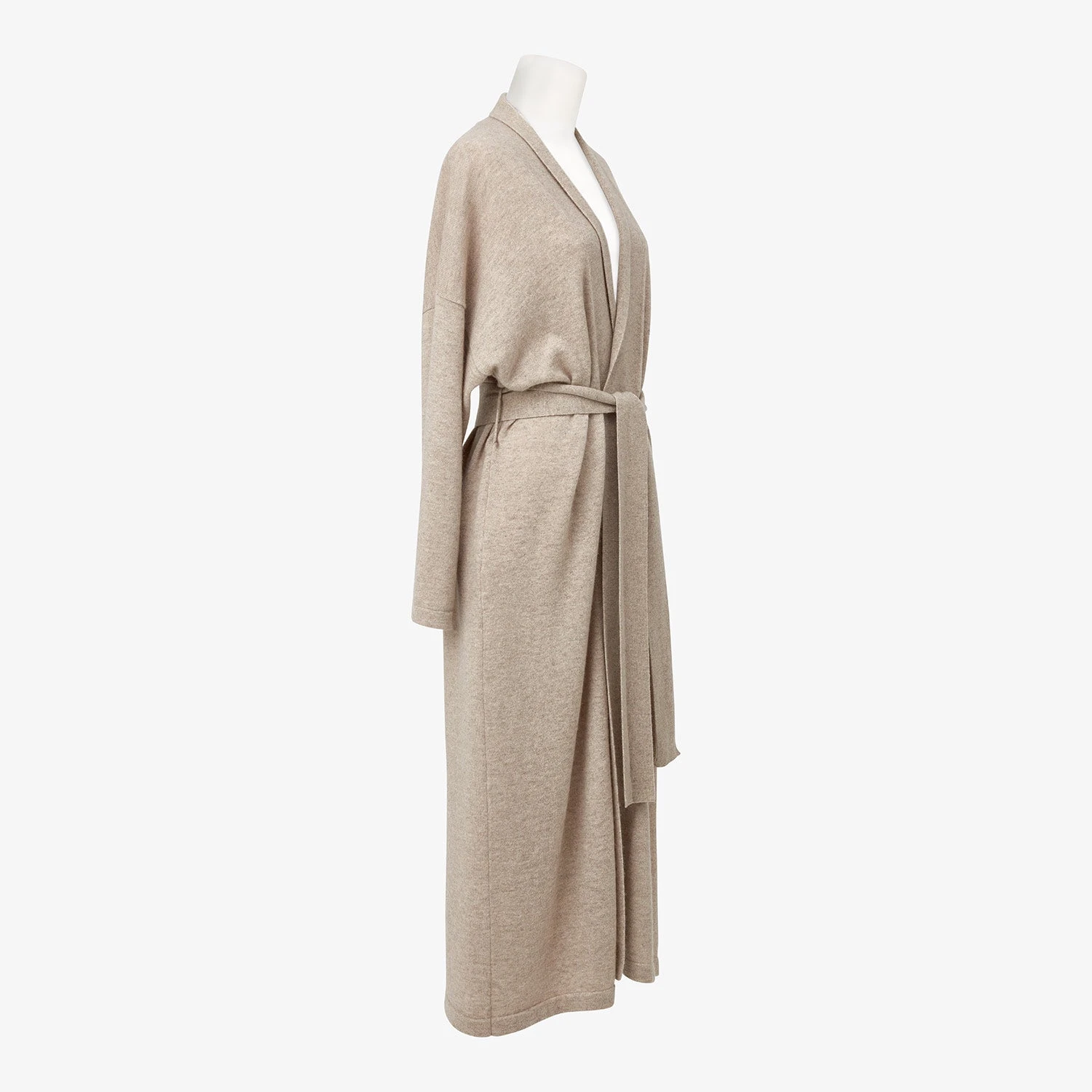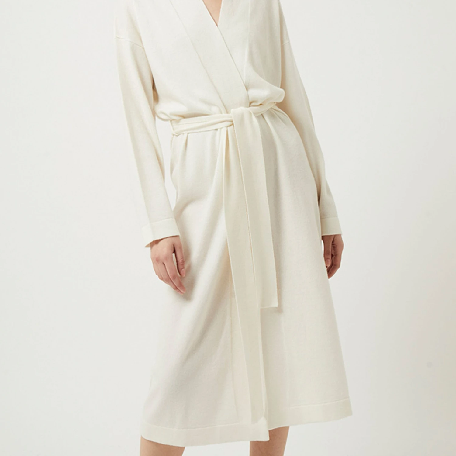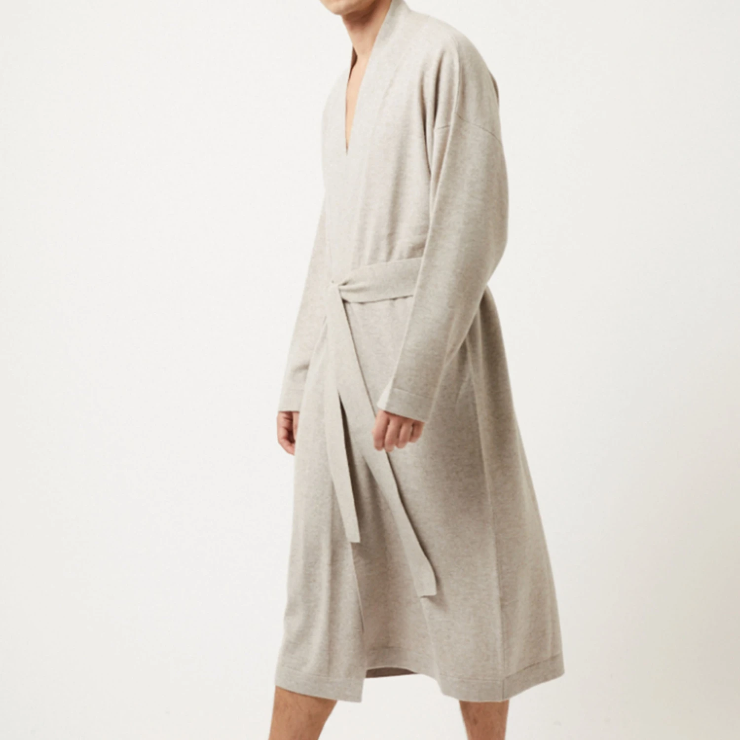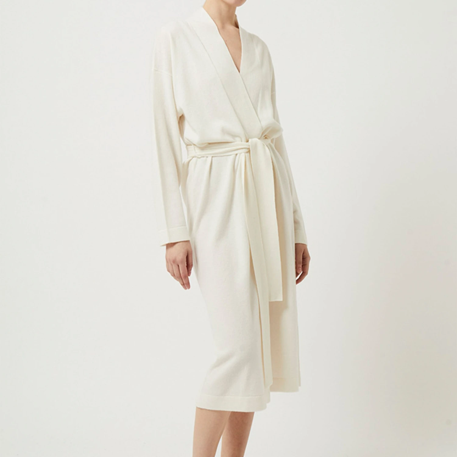 “}”>The Legere Dressing Gown is a knitted robe made of Oyuna’s signature pure cashmere. Featuring a belt closure and refined detailing, this cashmere robe is a clean and sophisticated take on a classic style with a luxuriously soft feel. Suitable for both men and women.