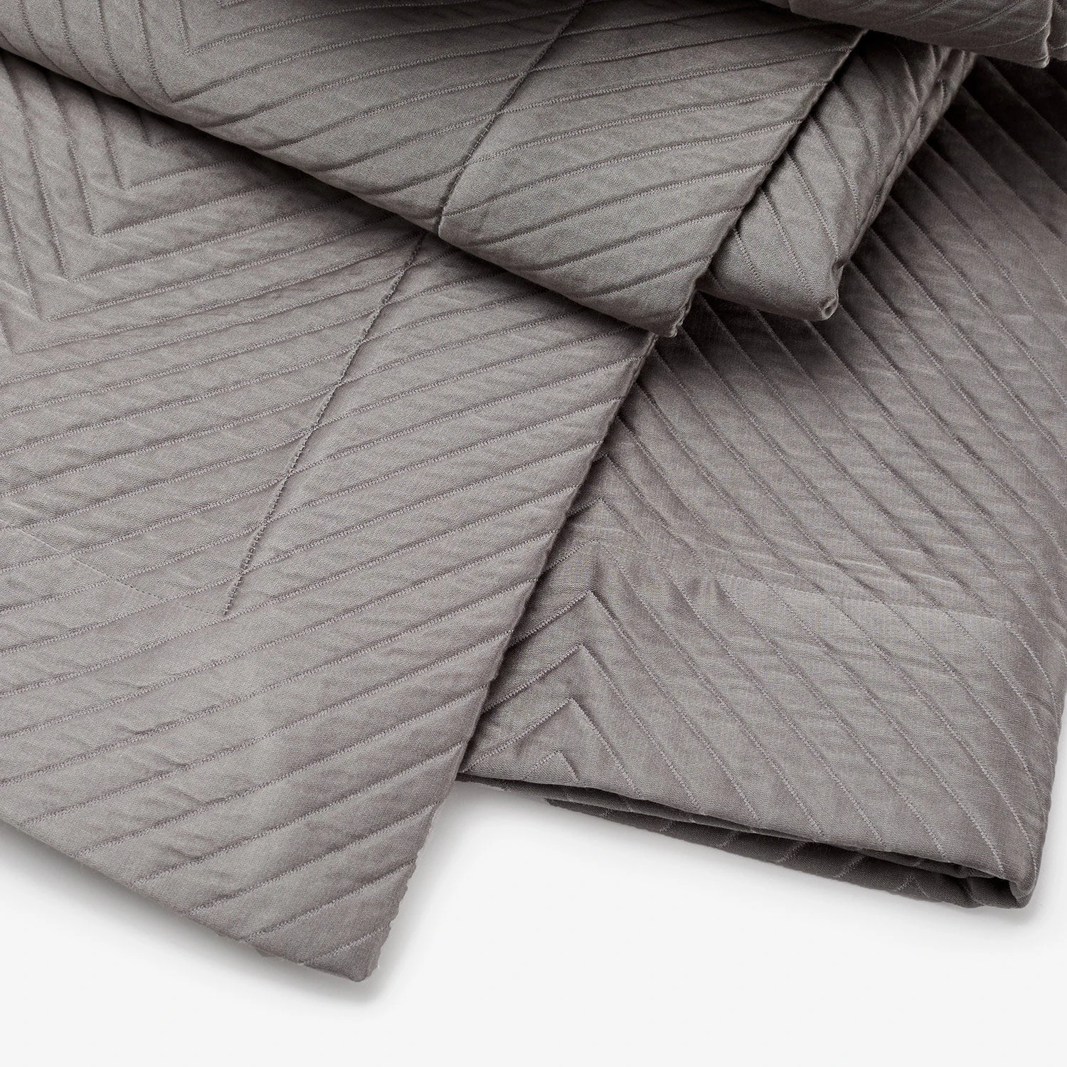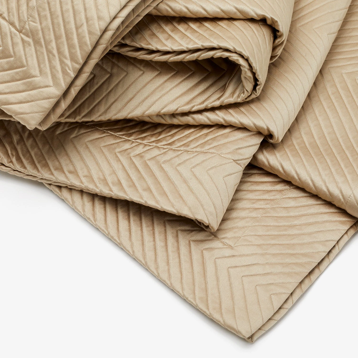 Crafted from a yarn-dyed silk jacquard blend fabric, the Luxury Herringbone Bedcover features a subtle shine and a classic herringbone design that extends to the matching hemmed borders for an elegant finish.