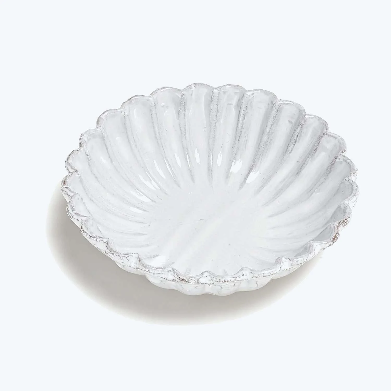 An intricate scalloped motif adds a touch of Parisian poetry to the kitchen. Handmade on the Rue St. Honore in Paris, these 18th-century inspired ceramics are crafted in a traditional pottery style passed down from generations. Hand molded from black terracotta, each piece is finished in a milky-white glaze that highlights the unique character of the clay, celebrating its imperfections and ensuring that no two pieces are exactly alike. Romantically bohemian, yet practical for every day use, they are entirely handcrafted in an antique Bastille workshop, historically home to Napoleon Bonaparte’s own silversmith.