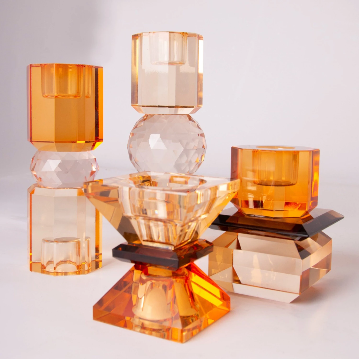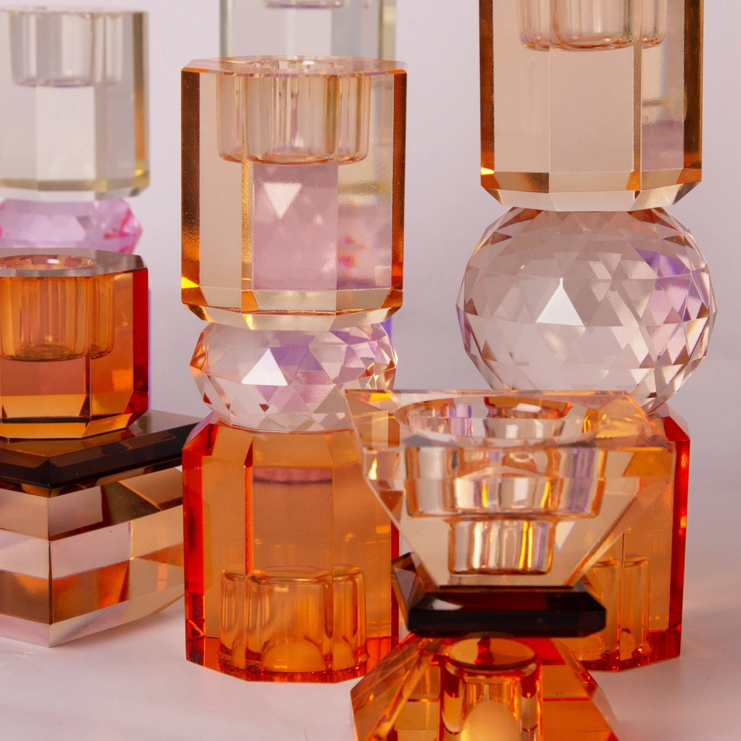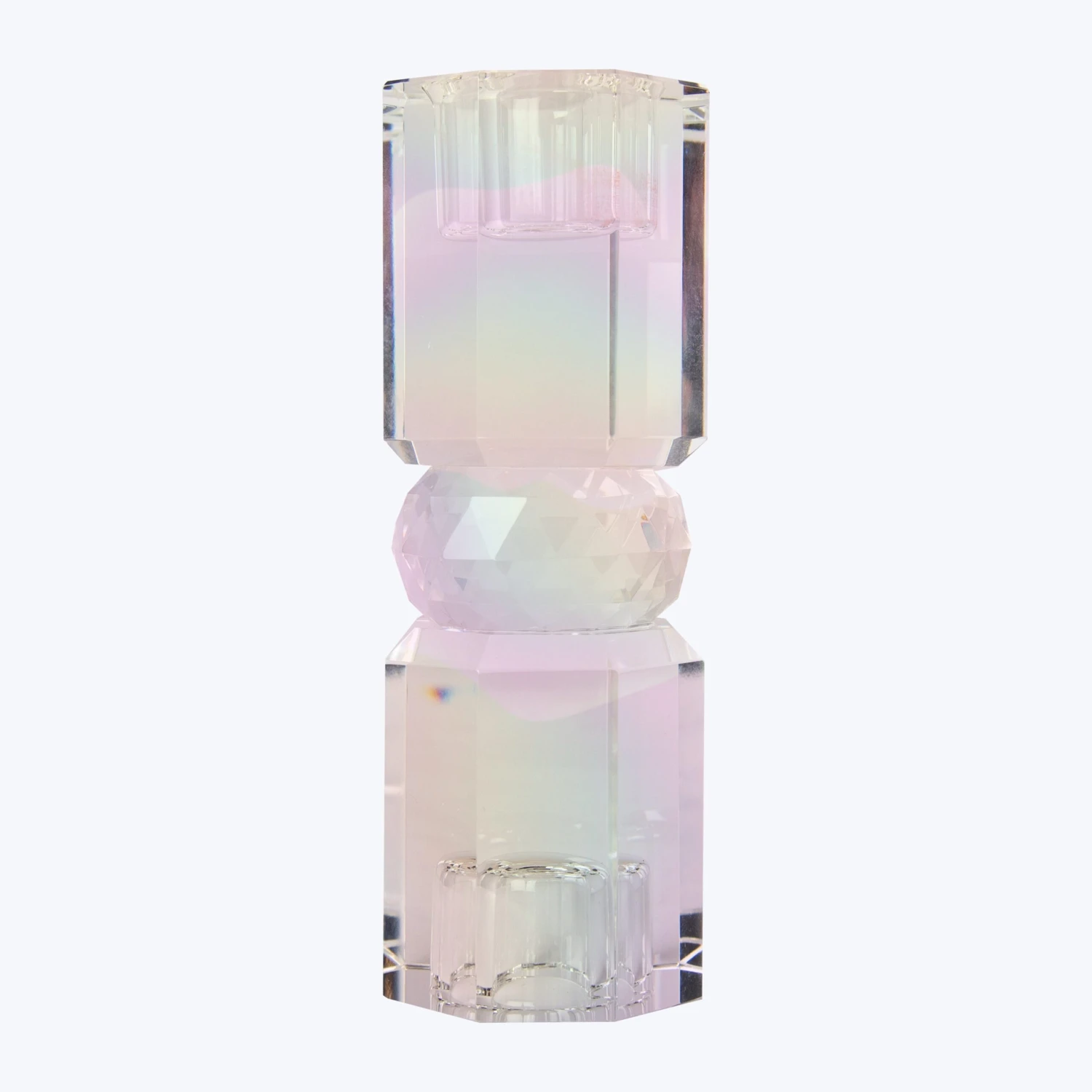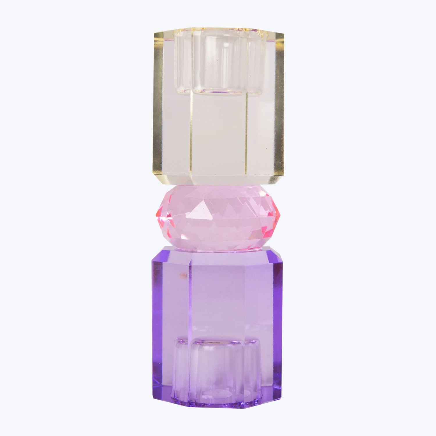 Transport your favorite sacred spaces to a mystical land of colorful magic with this Ornamental Crystal Candle Holder. This tall colorful crystal glass candle holder is an enchanting addition to your table settings, bookshelf, coffee table, or anywhere else in need of a little extra color.