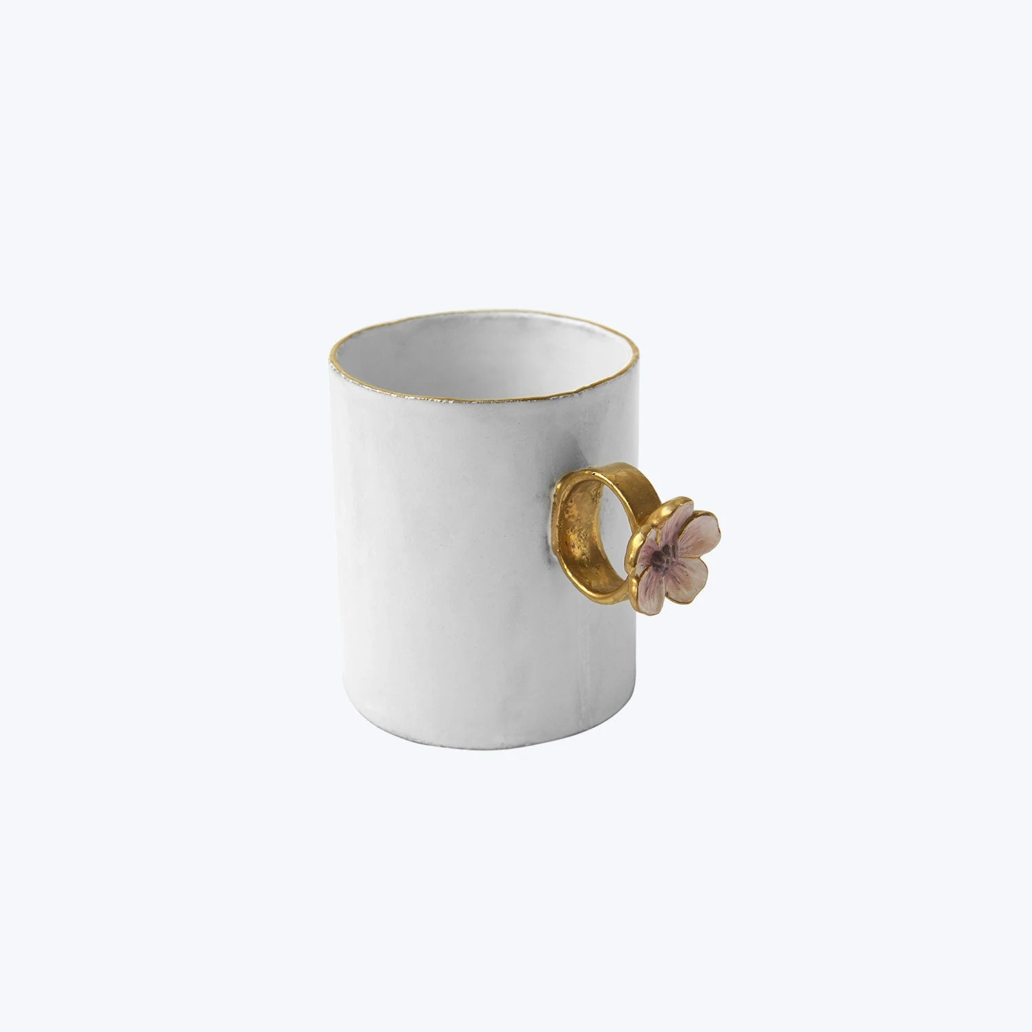 This Pink Flower Ring cup is a one-of-a-kind ceramic object born out of the collaboration between artist John Derian & Parisian-based ceramic studio Astier de Villatte. Hand-molded from black terracotta, this ring cup is finished in a milky-white glaze and features the sculpted creative flare of artist John Derian. Handmade in the ceramic studio of Astier de Villatte in Paris.