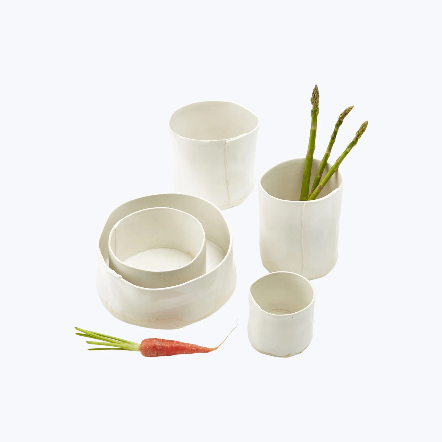 Exclusively at abc, handmade vessels from Jan Burtz are part of the abc Kitchen tabletop collection. Made by hand from creamy porcelain and homemade glazes, these ultra-thin creations bring us back to the basics in irregular, organic forms that accentuate the fluidity and grace of hand-formed wares. No two pieces are alike, though all are food, dishwasher, and microwave safe.