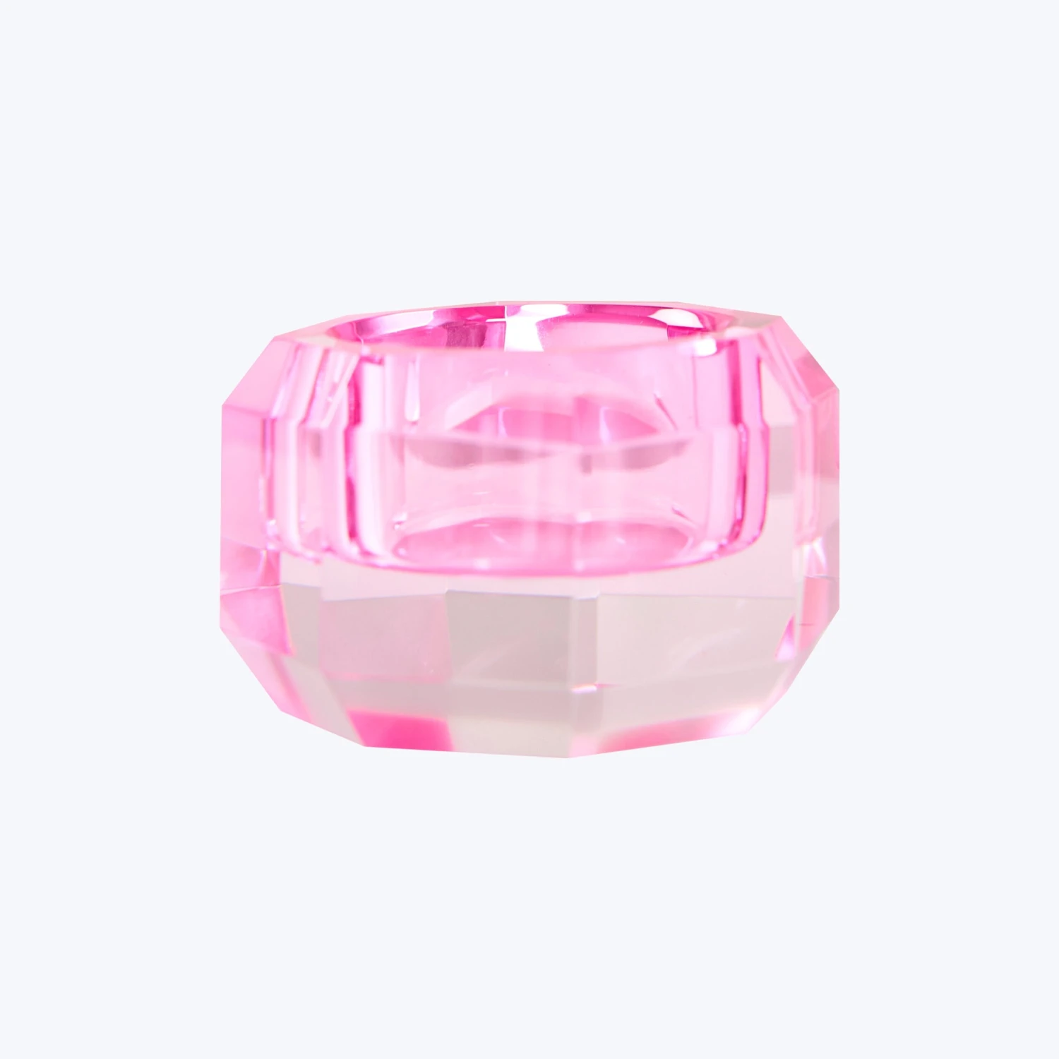 Transport your favorite sacred spaces to a mystical land of colorful magic with this Round Crystal Candle Holder. This low-profile colorful crystal glass candle holder is an enchanting addition to your table settings, bookshelf, coffee table, or anywhere else in need of a little extra color.
