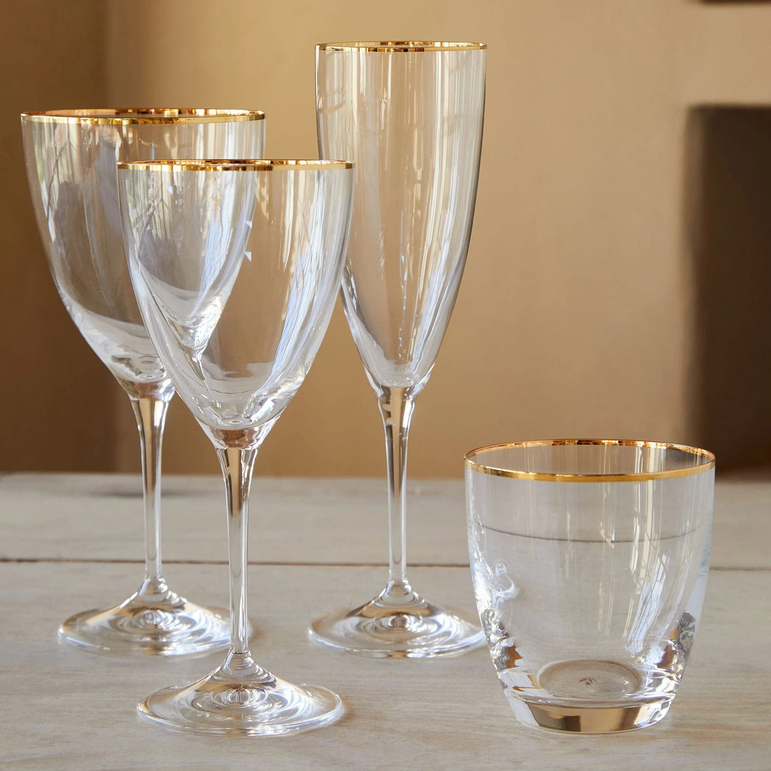 This Sensa Flute features a traditional form that is reimaged and rimmed in eye-catching gold. Featuring a slim yet sturdy stem, the Sensa Collection is an elevated take on traditional glassware.