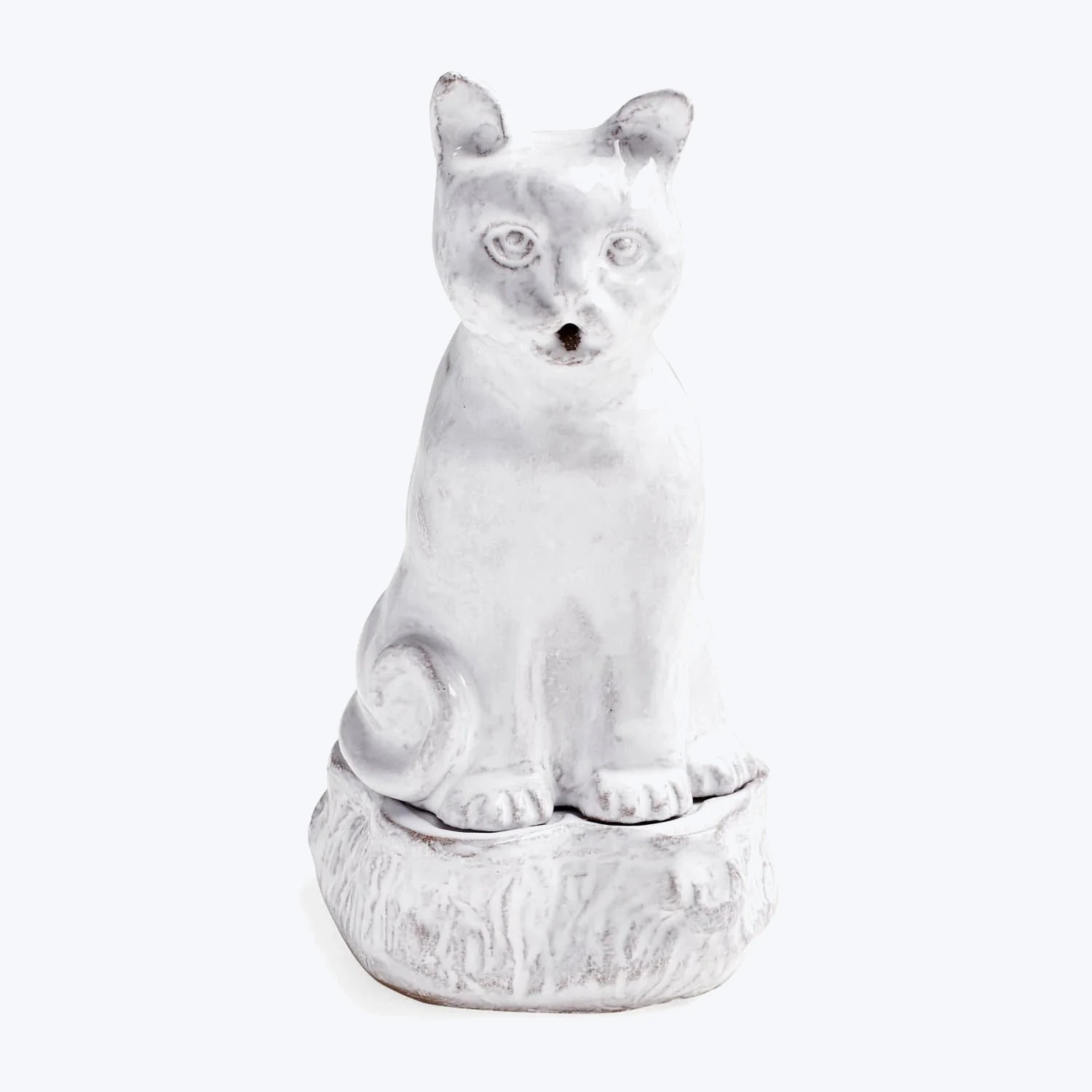 Capturing the curious portraiture of a cat, this black terracotta incense burner also features a hidden cache to store matches or incense. A collaboration with modern artist Setsuko Klossowska de Rola, the Astier de Villatte Setsuko collection explores nature-inspired subjects that compliment the one-of-a-kind individuality of each piece, handcrafted on the Rue St. Honore in Paris.