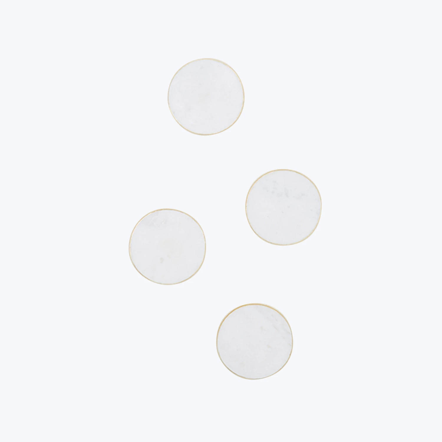 This Set of 4 Simple Marble Coasters is constructed from solid marble and finished with an eye-catching brass edge. These marble coasters help protect your favorite pieces of furniture from pesky water rings. These minimalist marble coasters are all about staying true to natural materials that last and last. Finished with a felt bottom to keep it sturdy and stable.