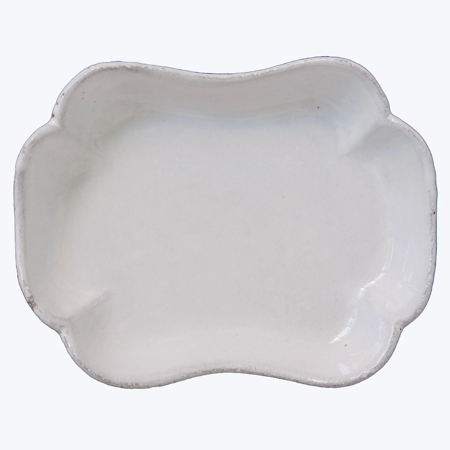 The small Colbert 6 Waves dish from Parisian-based ceramic studio Astier de Villatte puts forth striking shapes and hand-sculpted natural textures, emulating the elegance of simplicity in French 18th-century style ceramics. Handmade on the Rue St. Honore in Paris, these ceramics are crafted in a traditional pottery style passed down from generation to generation Ñ putting forth one-of-a-kind objects both romantically bohemian and practical in their everyday use. Hand molded from black terracotta, each piece from Astier de Villatte is finished in a milky-white glaze that highlights the unique character of the clay, celebrating its imperfections and ensuring that no two pieces are exactly alike.