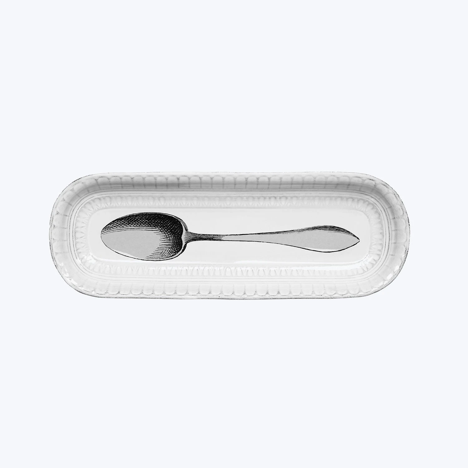 Emblazoned with the iconic work of decoupage artist John Derian, this spoon platter unearths the whimsy & play in the arrangement of a well-set table. Handmade on the Rue St. HonorŽ in Paris, these 18th-century-inspired ceramics are crafted in a traditional pottery style passed down from generation to generation. Hand-molded from black terracotta, each piece is finished in a milky-white glaze that highlights the unique character of the clay, celebrating its imperfections and ensuring that no two pieces are exactly alike.