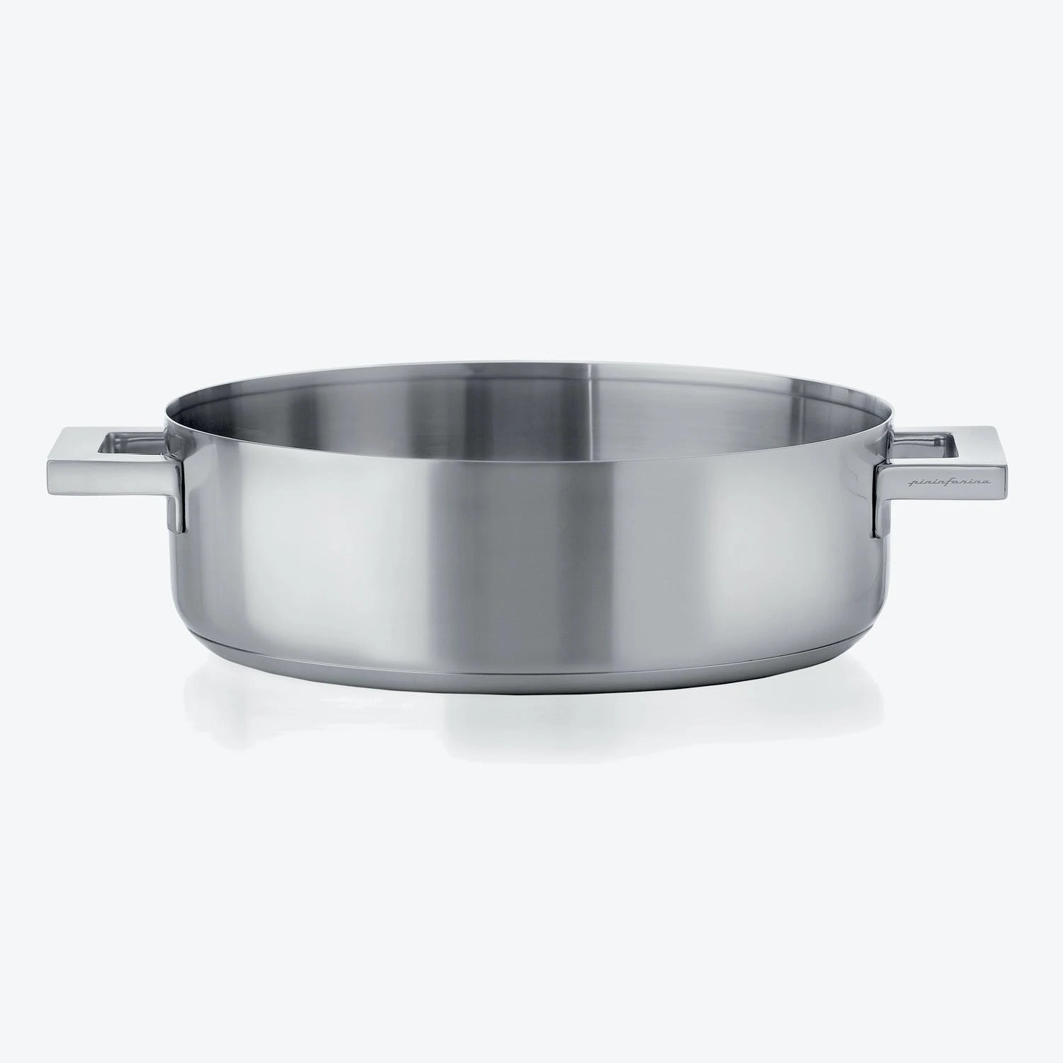 Made in collaboration between Mepra and Pininfarina, the Stile Two-Handle Saute Pan features clean lines crafted in durable stainless steel. Striking the perfect balance between form and function, the Stile Cookware Collection yields a refined line of pots and pans that are the perfect kitchen companion for lovers of traditional Italian design. The contrast between the shiny finish of the handles and the satin-finished exterior gives the Stile collection an unmistakable look.