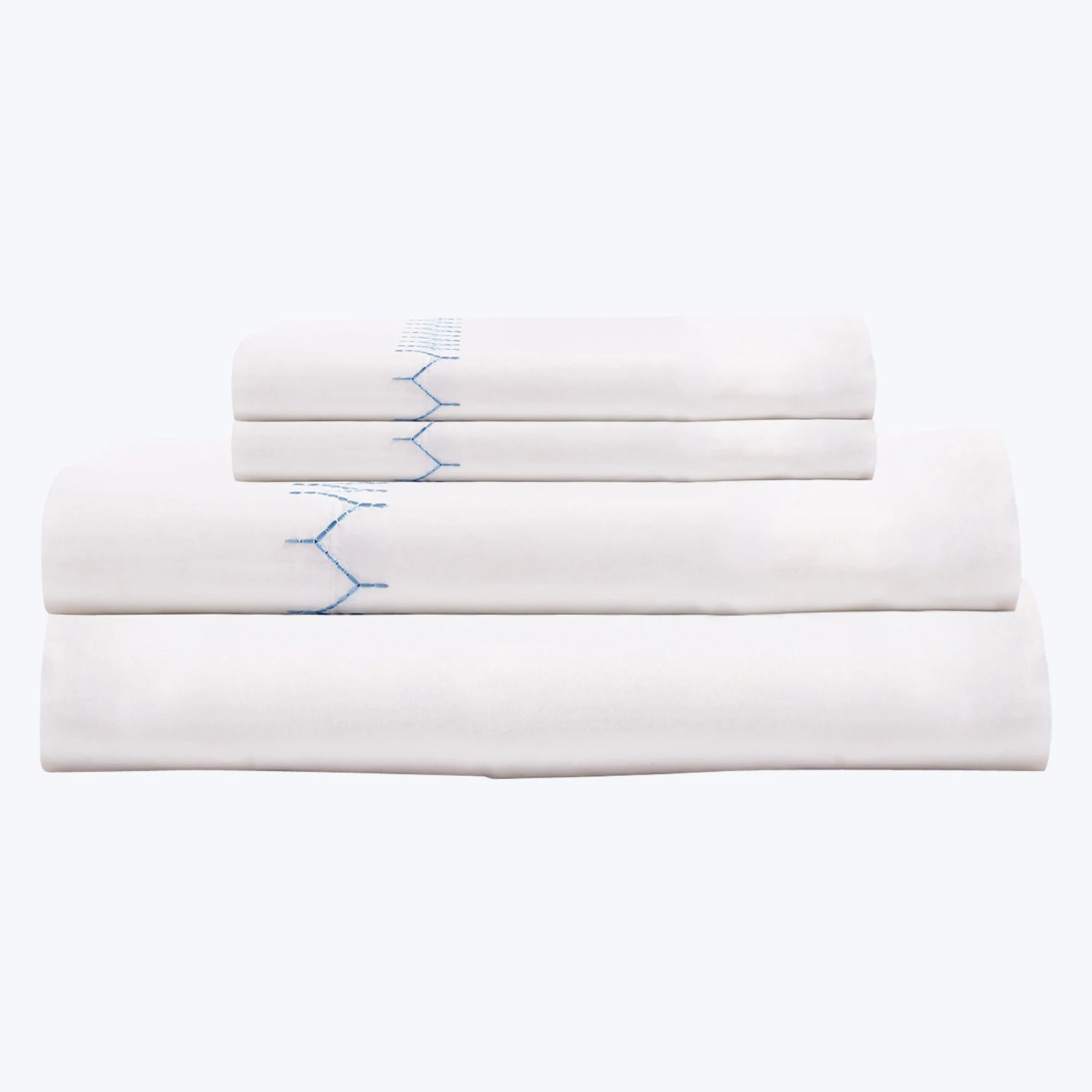 Featuring an enlarged hand embroidered designs for a bold new look, these Stitched Sheets complement John Robshaw’s full line of bedding prints and make them lovely layering essentials. Created using hand-stitched methods that are a tradition in India, passed down from generation to generation.