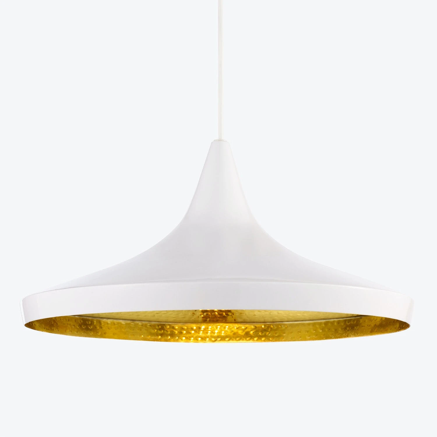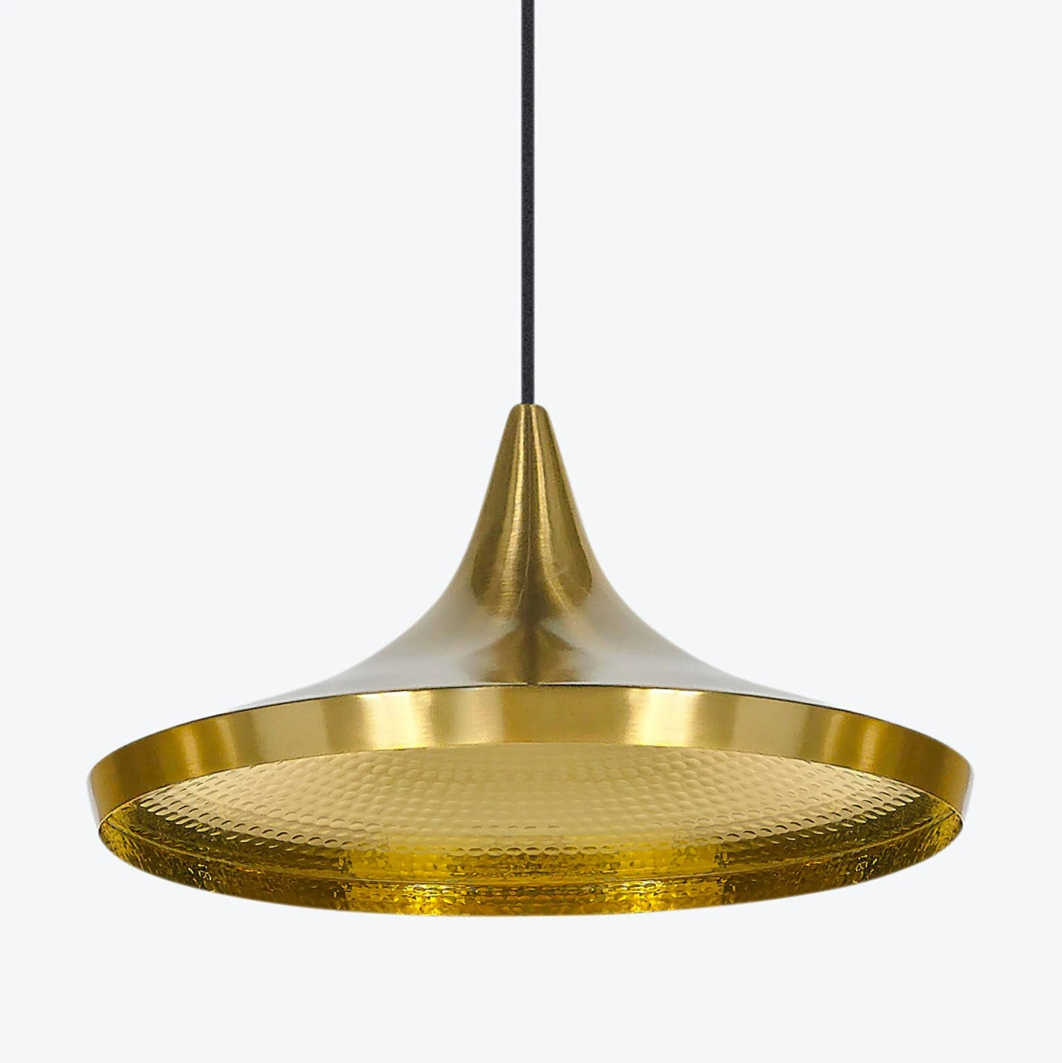 Inspired by the sculptural forms of traditional Indian water vessels, this pendant lamp is a beautiful expression of simplicity. The shade is hand-formed through spinning and beating metalwork techniques and its inner surface is finished with a protective lacquer. The included LED bulb casts an energy-saving glow that lasts for much longer than incandescent alternatives.
