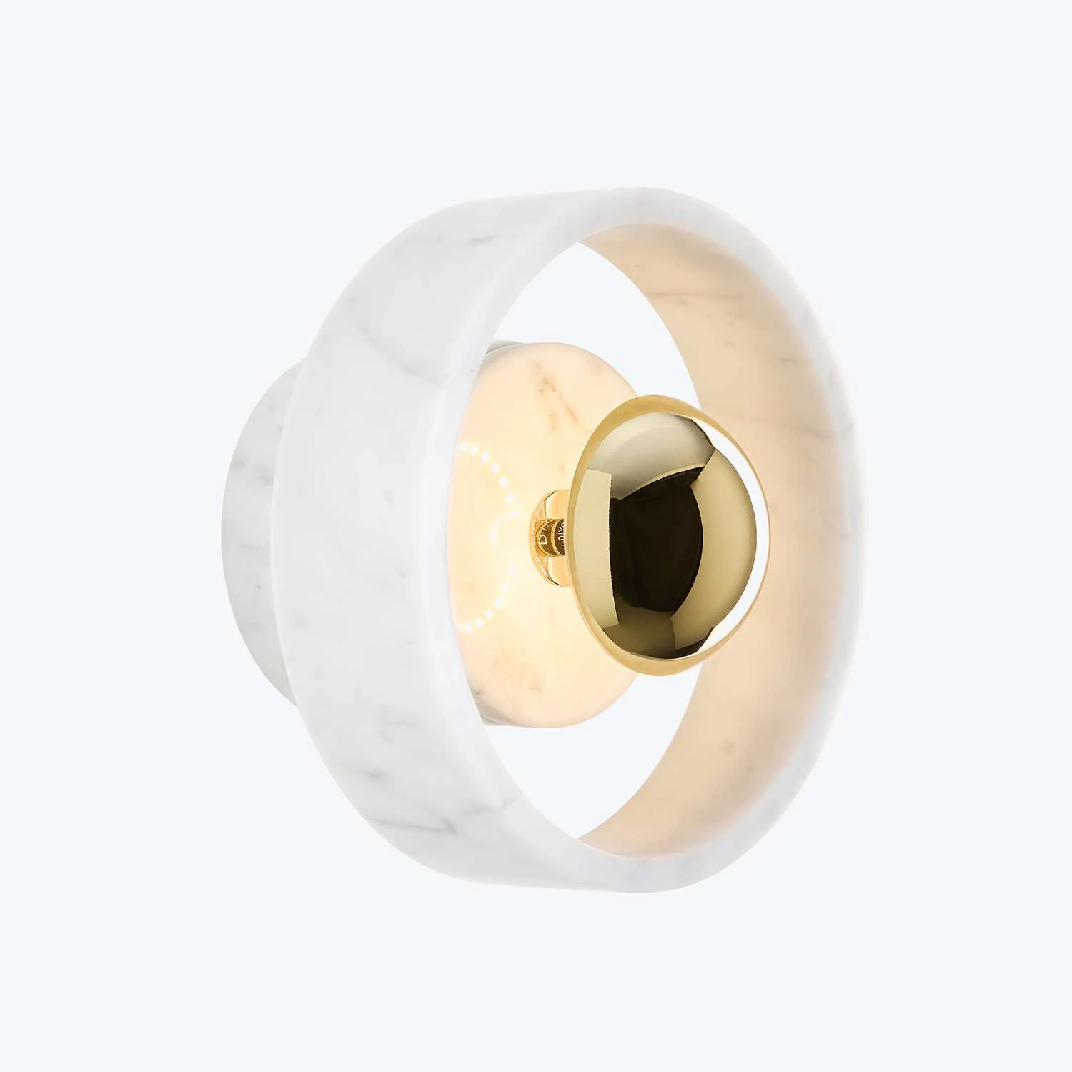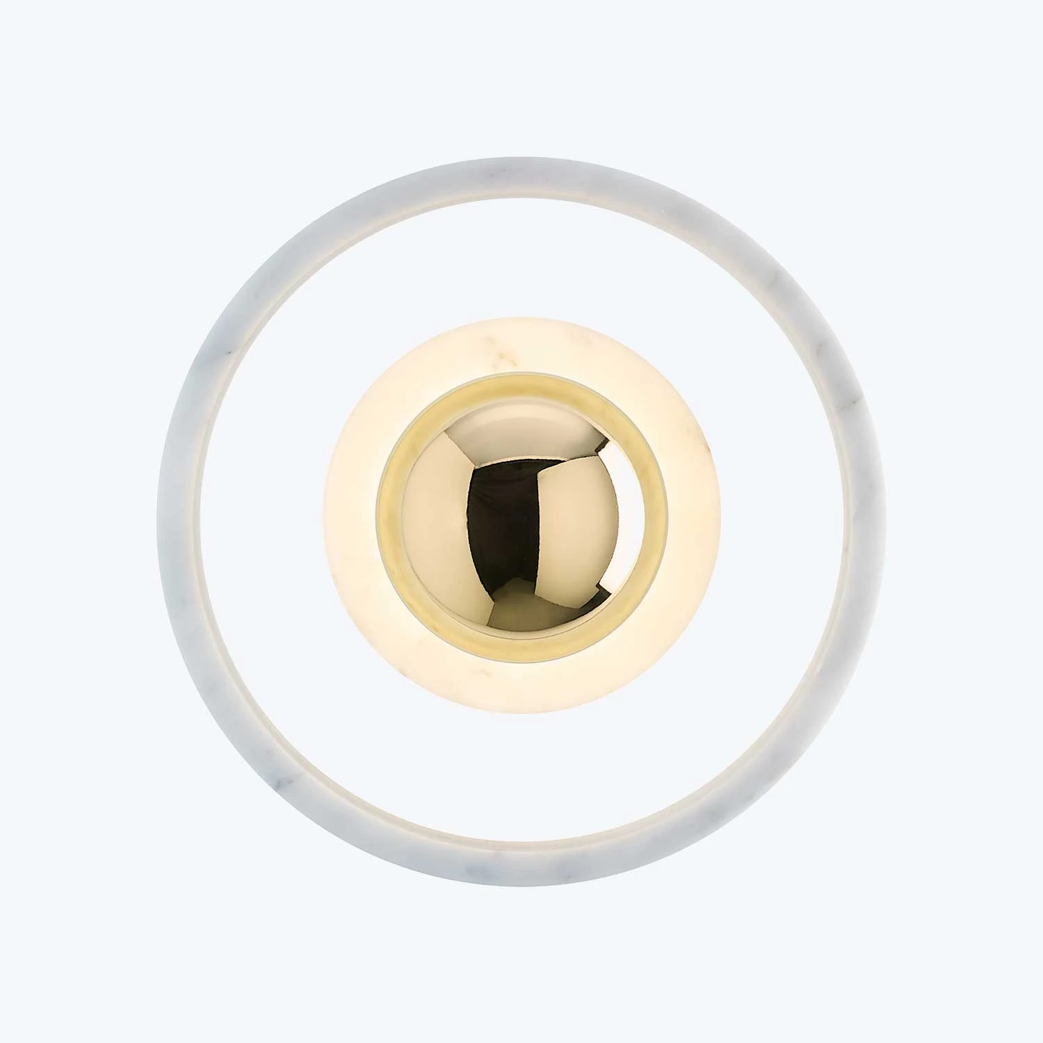 This semi-precious stone wall fixture is bold in silhouette and simple in function, featururing an LED light with spherical ring shaped tiers.