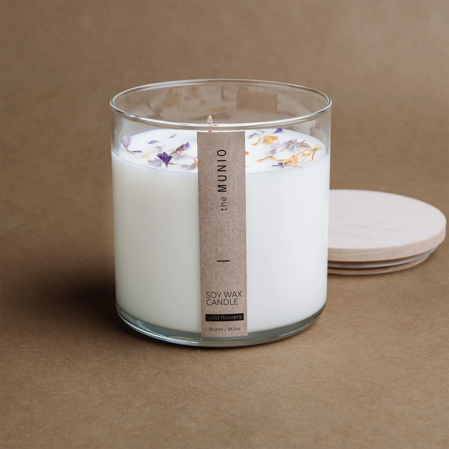 Fragrance: Wildflowers | Volume: 550 ml | Dimensions: 8 cm x H 10 cm | Burn Time: 50h
