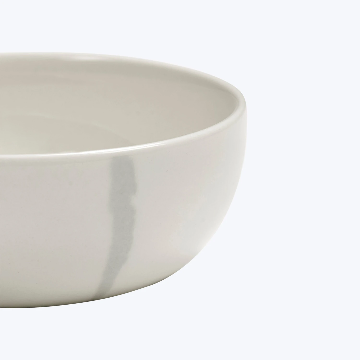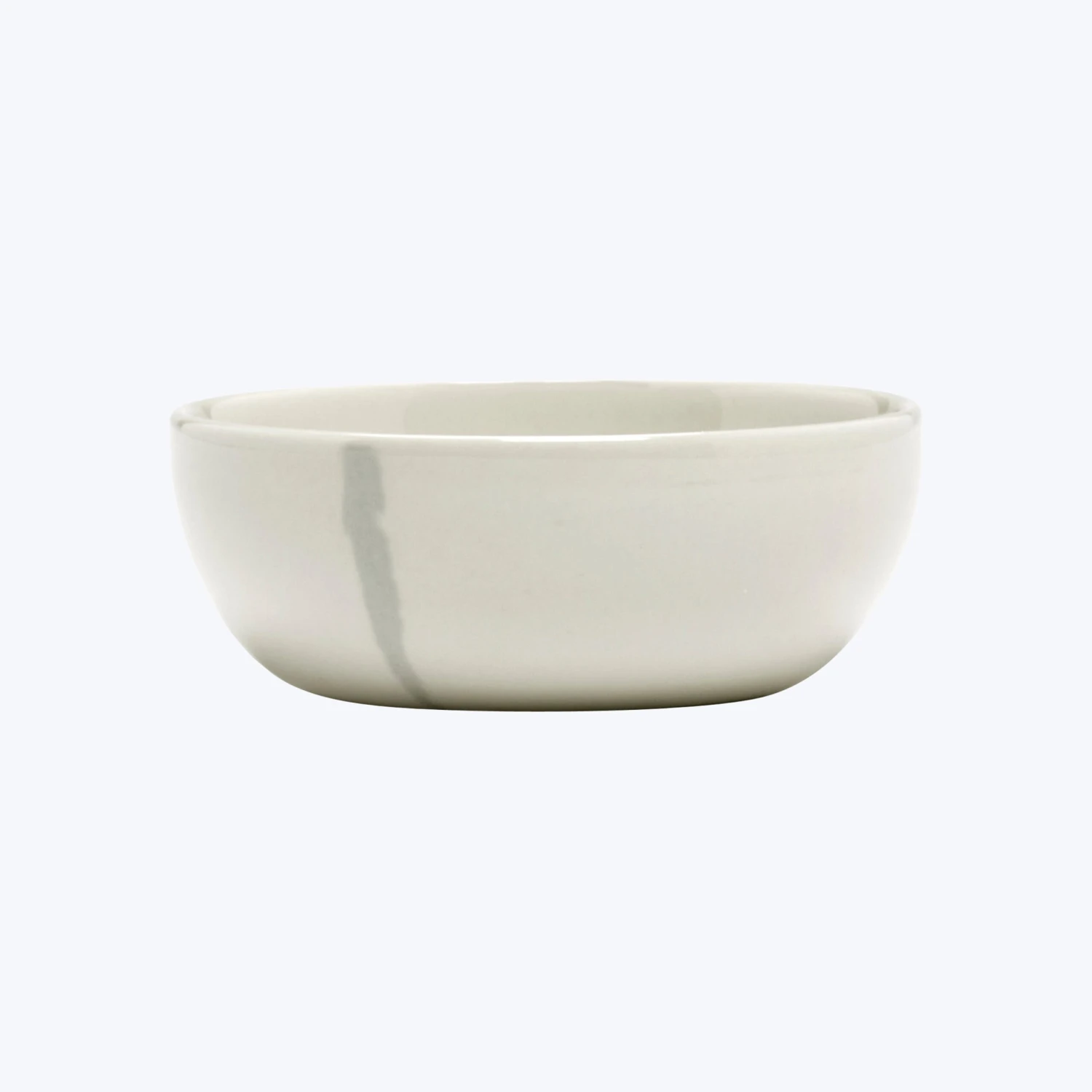 Kelly Wearstler started from a digital graphic pattern, inspired by Bauhaus principles, to design the Zuma, her collection of porcelain tableware. Each pattern is hand-stamped onto the pieces for a hand-painted look and feel, after which the glaze is applied. The patterns vary and you can easily mix and match the different bowls, trays, plates, and serving dishes to create your own unique dinnerware set.